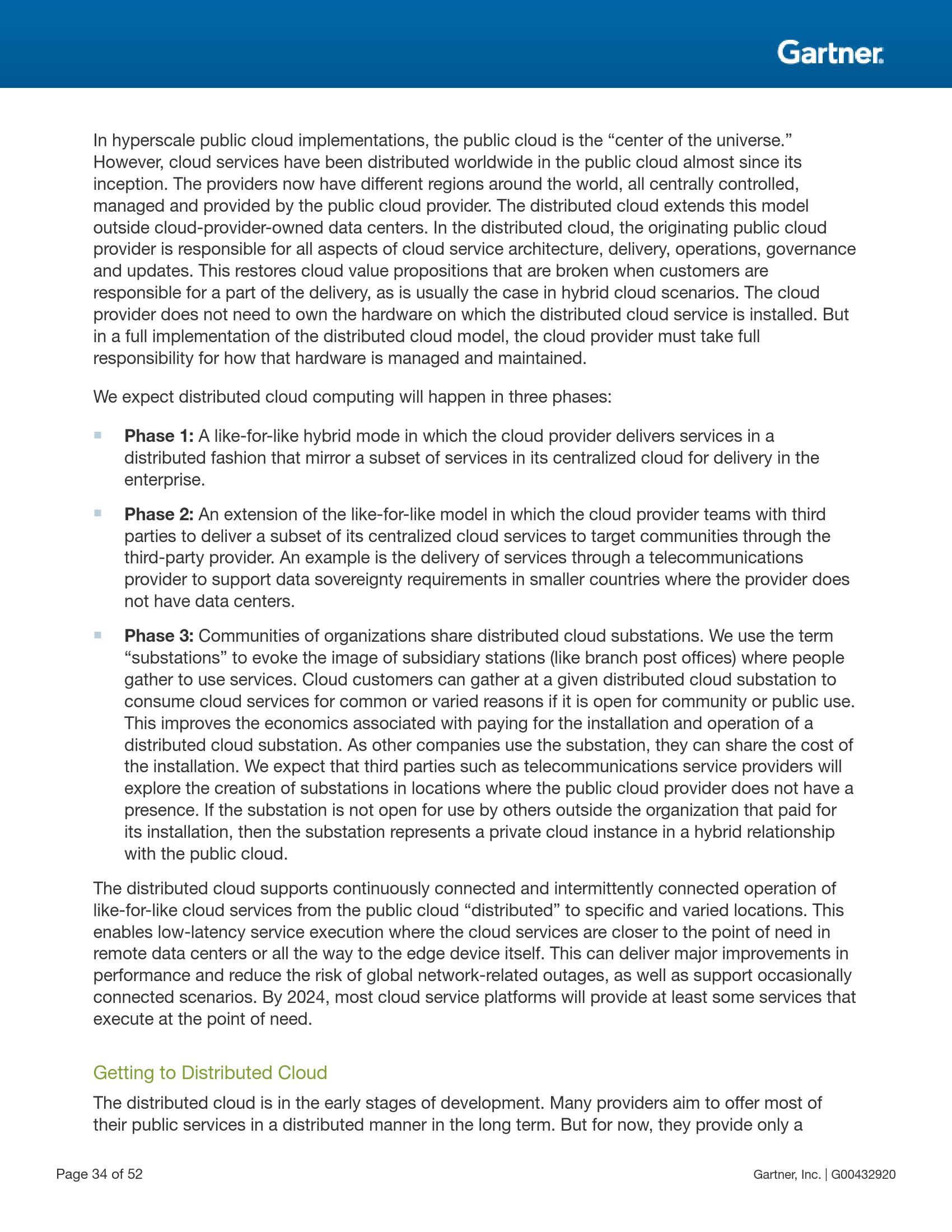 分布式云指的是将目前集中式的公有云服务分布到不同的物理位置,原来的公有云提供商继续负责分布式云的运营、治理、更新和迭代。这对于目前大多数公有云服务所采用的集中式模式是一次巨大的转变,并且将开辟云计算的新时代。