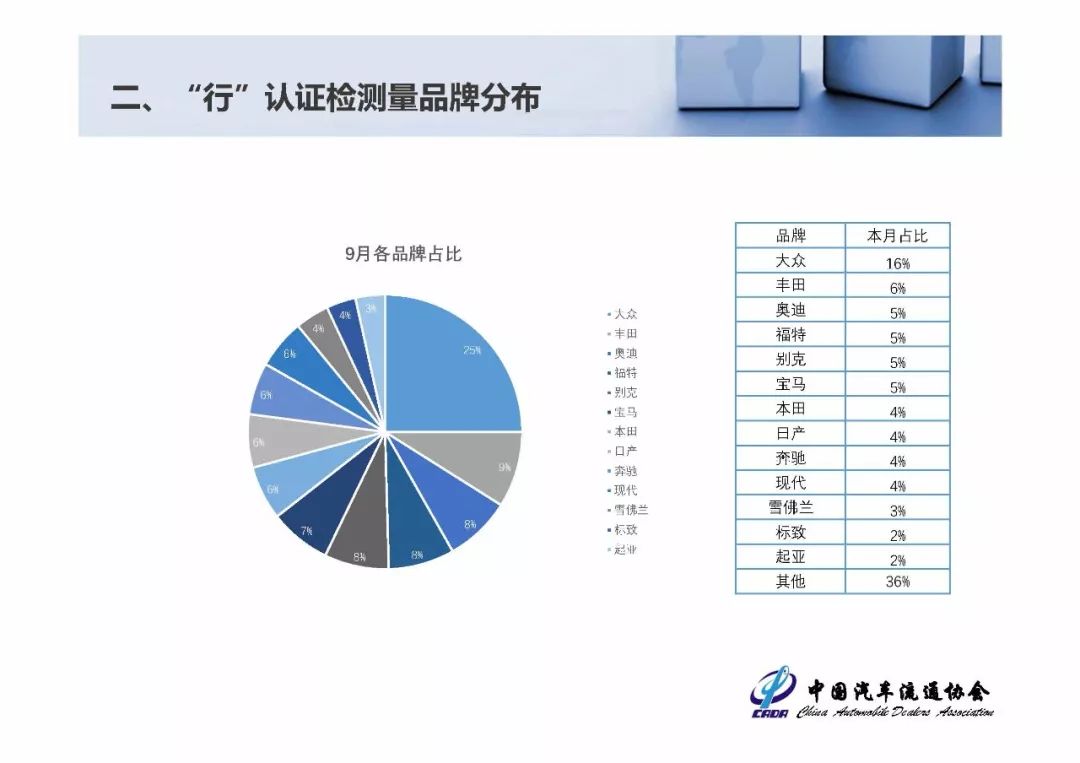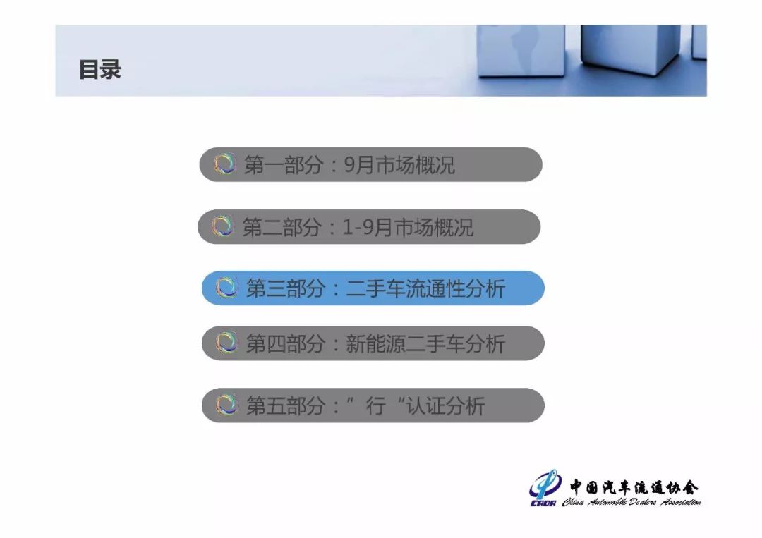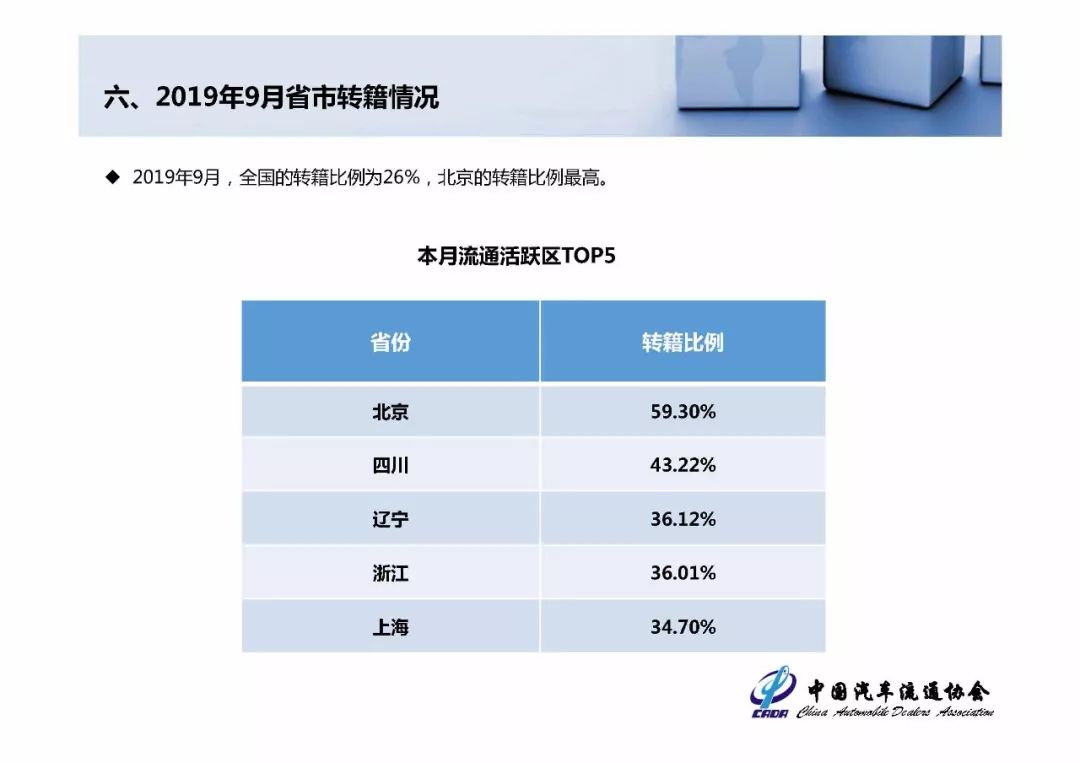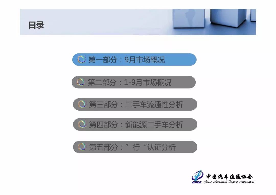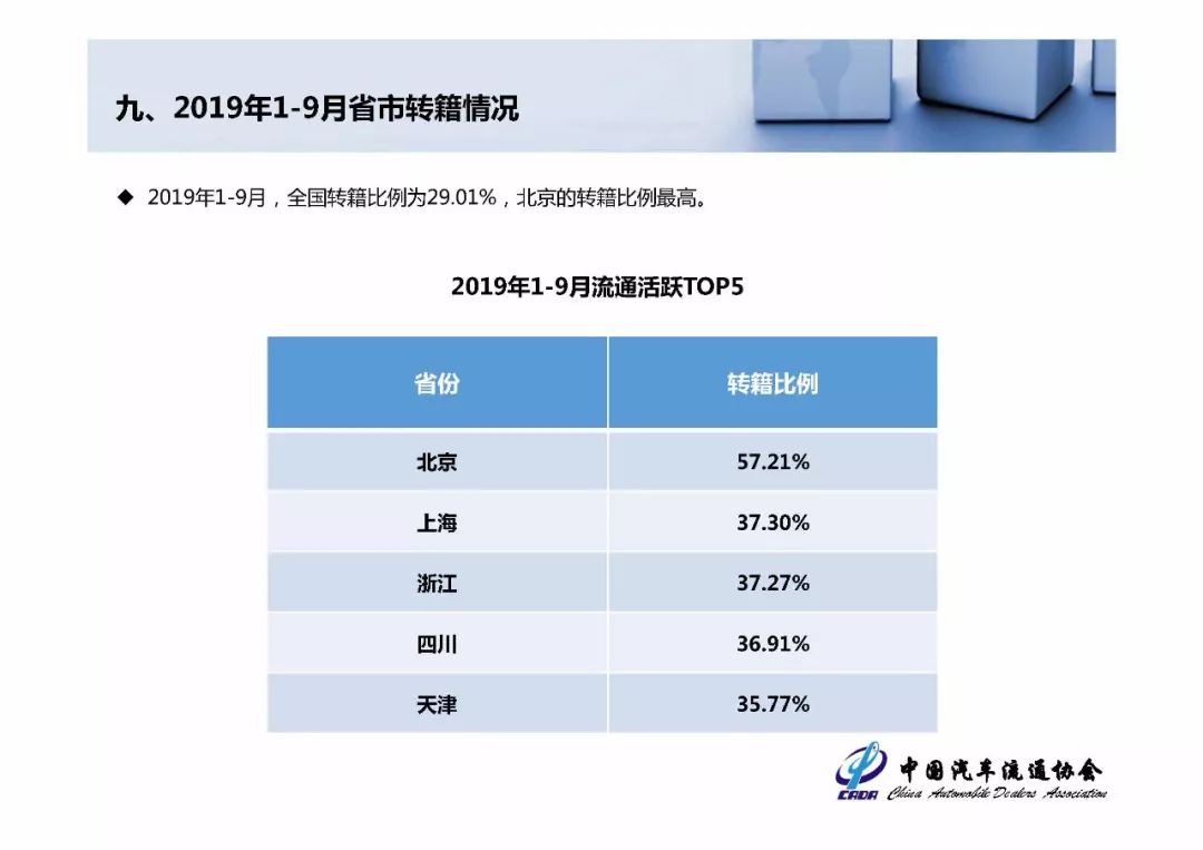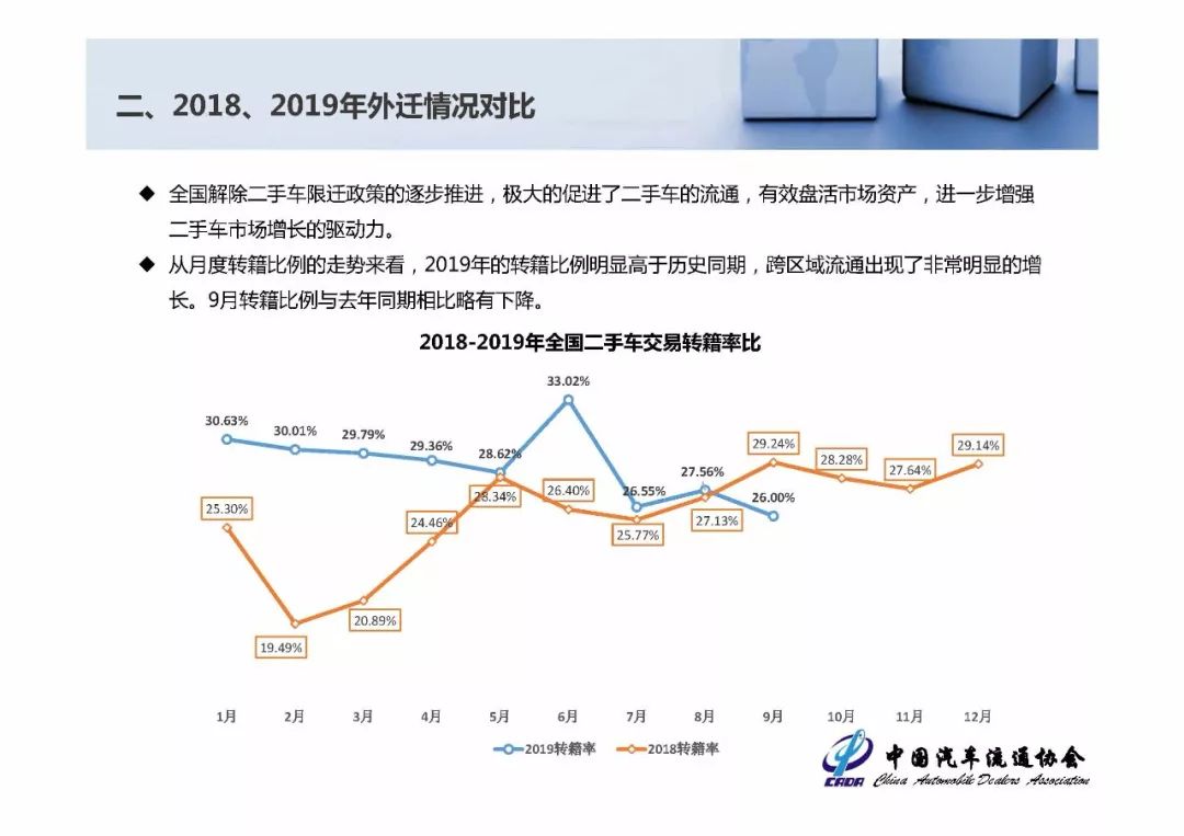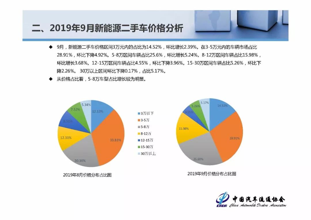 中国汽车流通协会:2019年9月二手车市场详细分析 9月全国二手车交易量为131.18万辆,同比增长7.47%。较8月份增速明显加快。2019年新车市场呈现同比负增长态势,二手车市场增速明显减缓,行业进入新的调整期。 更多阅读:中国汽车流通协会:2021年1月全国二手车市场深度分析中国汽车流通协会:2022年2月全国二手车市场深度分析中国汽车流通协会:2022年3月全国二手车市场深度分析中国汽车流通协会:2022年3月全国二手车市场深度分析中国汽车流通协会:二手车市场走势特征分析中国汽车流通协会: 2021年9月二手车市场简析中国汽车流通协会:2022年9月全国二手车市场深度分析中国汽车流通协会:2020年4月二手车市场深度分析中国汽车流通协会:2019年二手车市场概况及形式分析【上】中国汽车流通协会:2020年3月份国内狭义乘用车市场销量达104.5万辆 同比下降40.4%中国汽车流通协会:2019年2月全国二手车市场分析中国汽车流通协会:2023年9月二手车市场简析中国汽车流通协会:2023年7月全国二手车市场深度分析中国汽车流通协会:2023年8月全国二手车市场深度分析中国汽车流通协会:2023年6月二手车市场简析