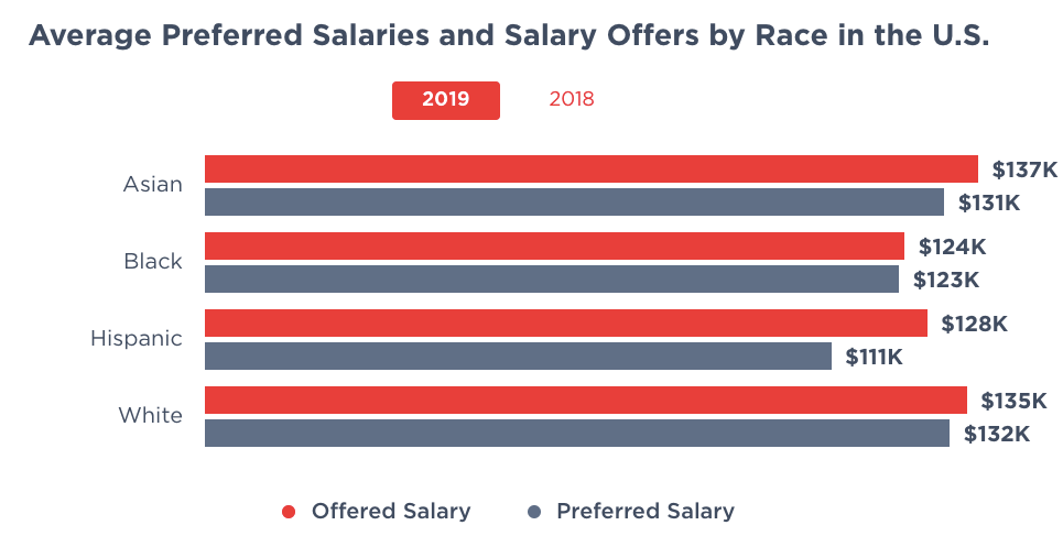 除了年龄,不同的人种收入也有差异。2019年亚裔平均收入首次超越白人,成为所有种族中平均收入最高的族群,而黑人再次垫底。
