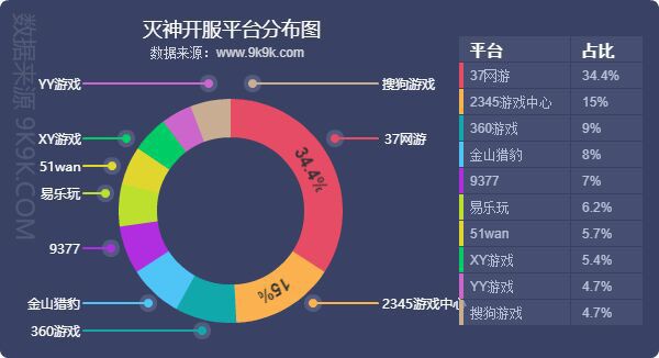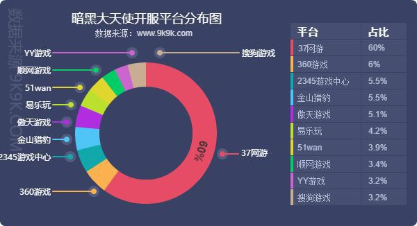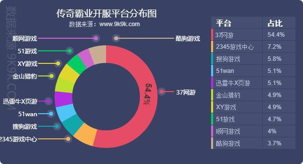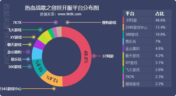 点评:本月各平台主打游戏开服情况并无太大改变,其中37网游将《热血战歌之创世》加入了平台主打游戏行列,开服频率高达11.37服/天。各平台的主打游戏,均占对应平台开服占比的20%上下。