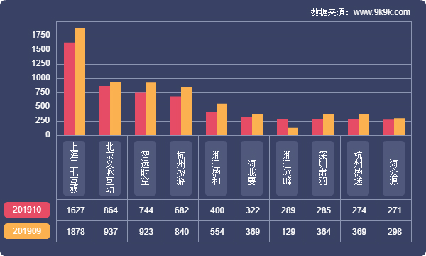 点评:本月开服前十平台流水较上月变化不大,37网游继续以较大优势领跑榜单,旗下热点游戏本月表现不俗。其余各平台开服策略未发生显著变化,流水收益方面也较为稳定,波动不大。