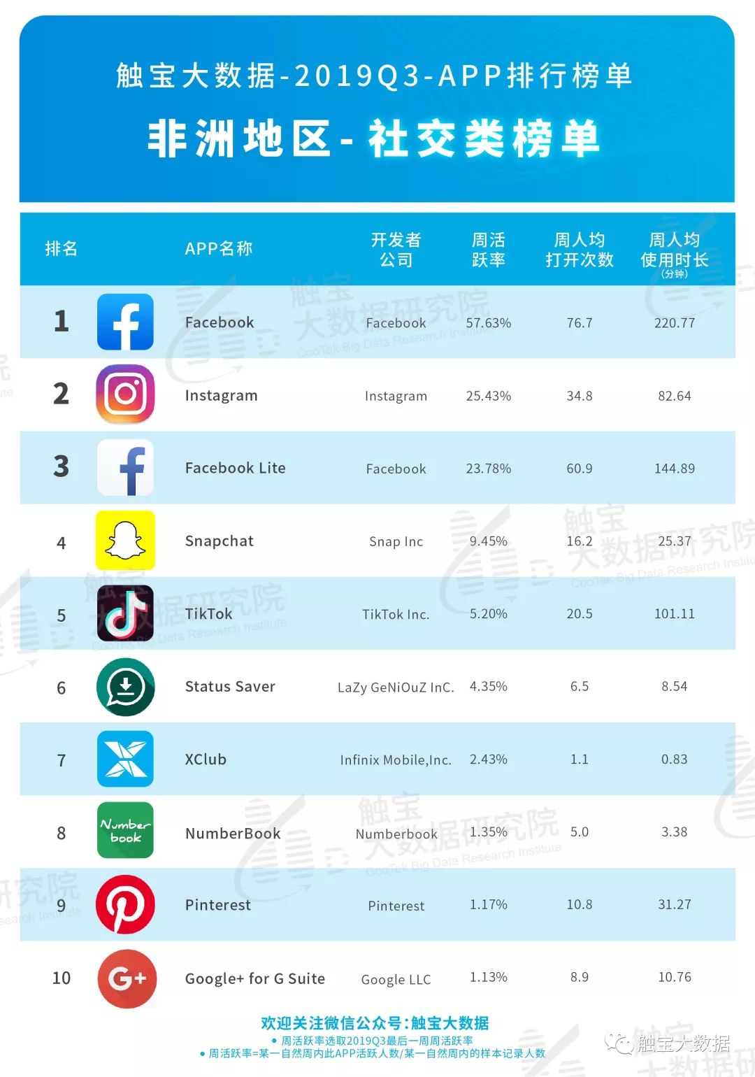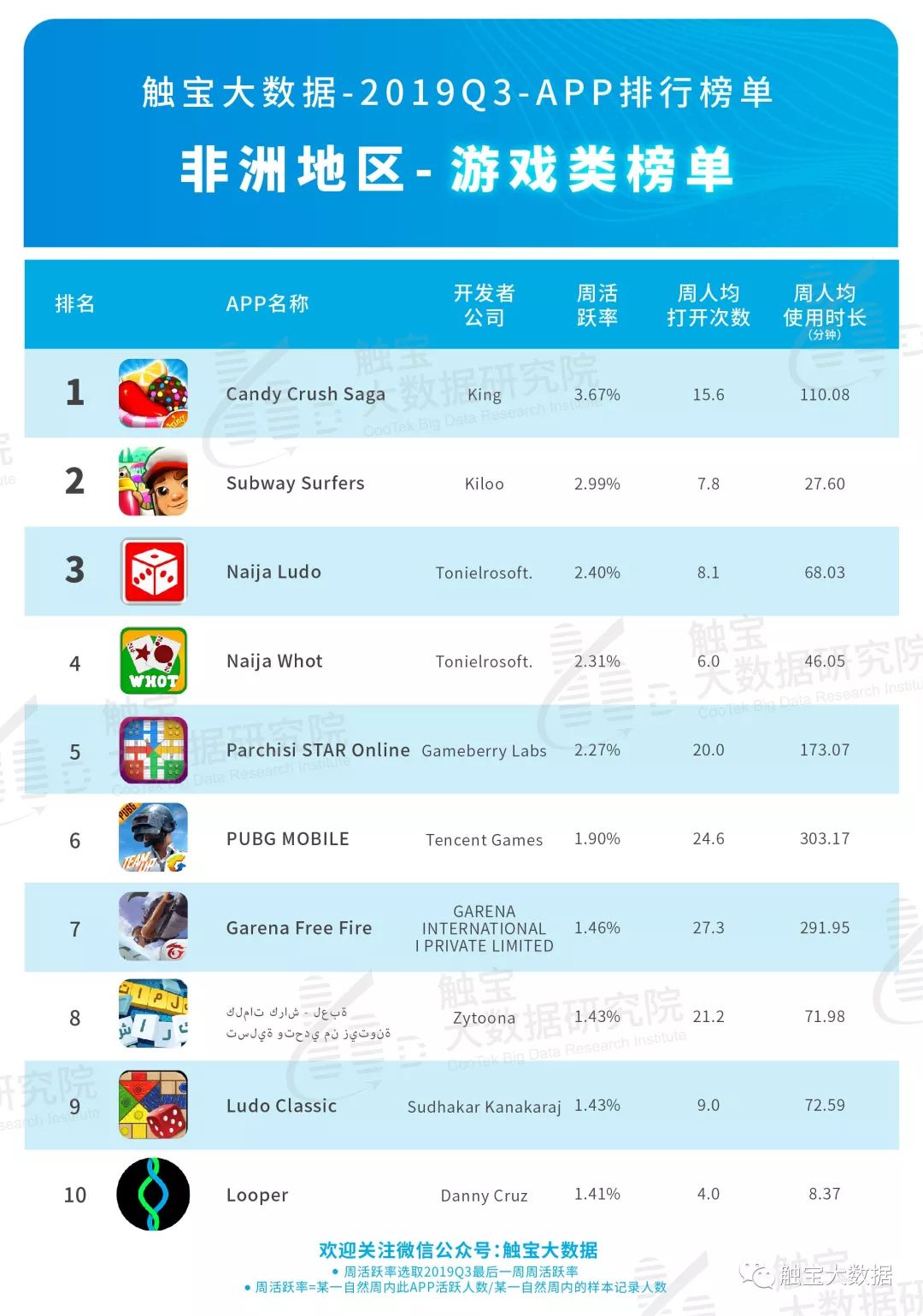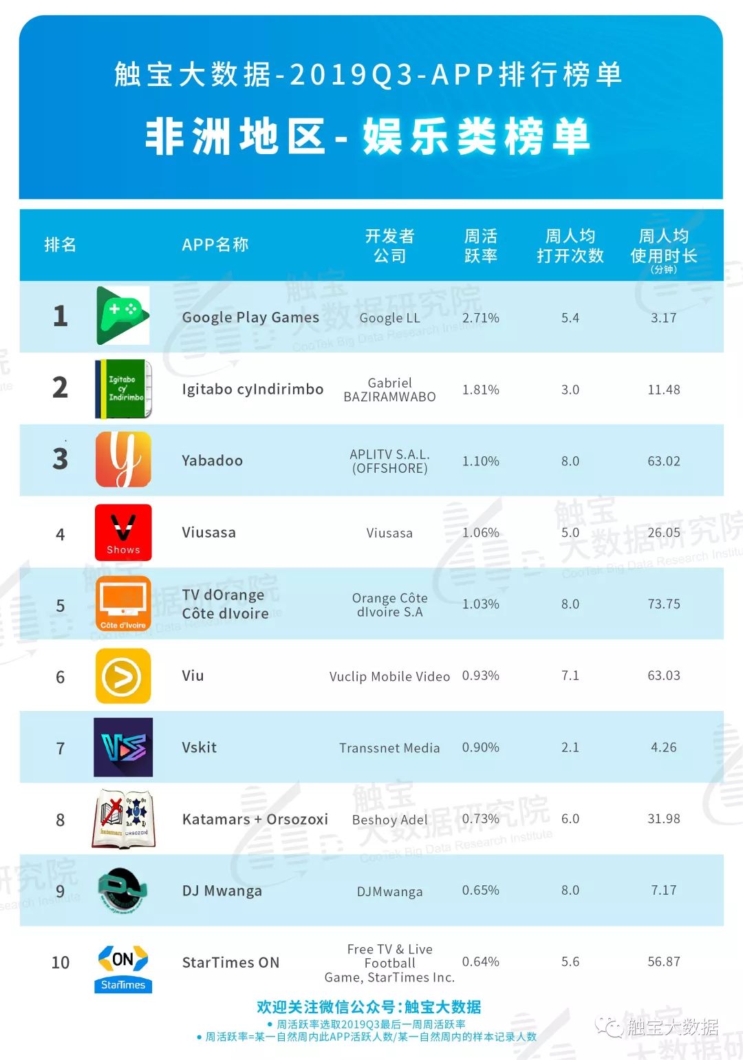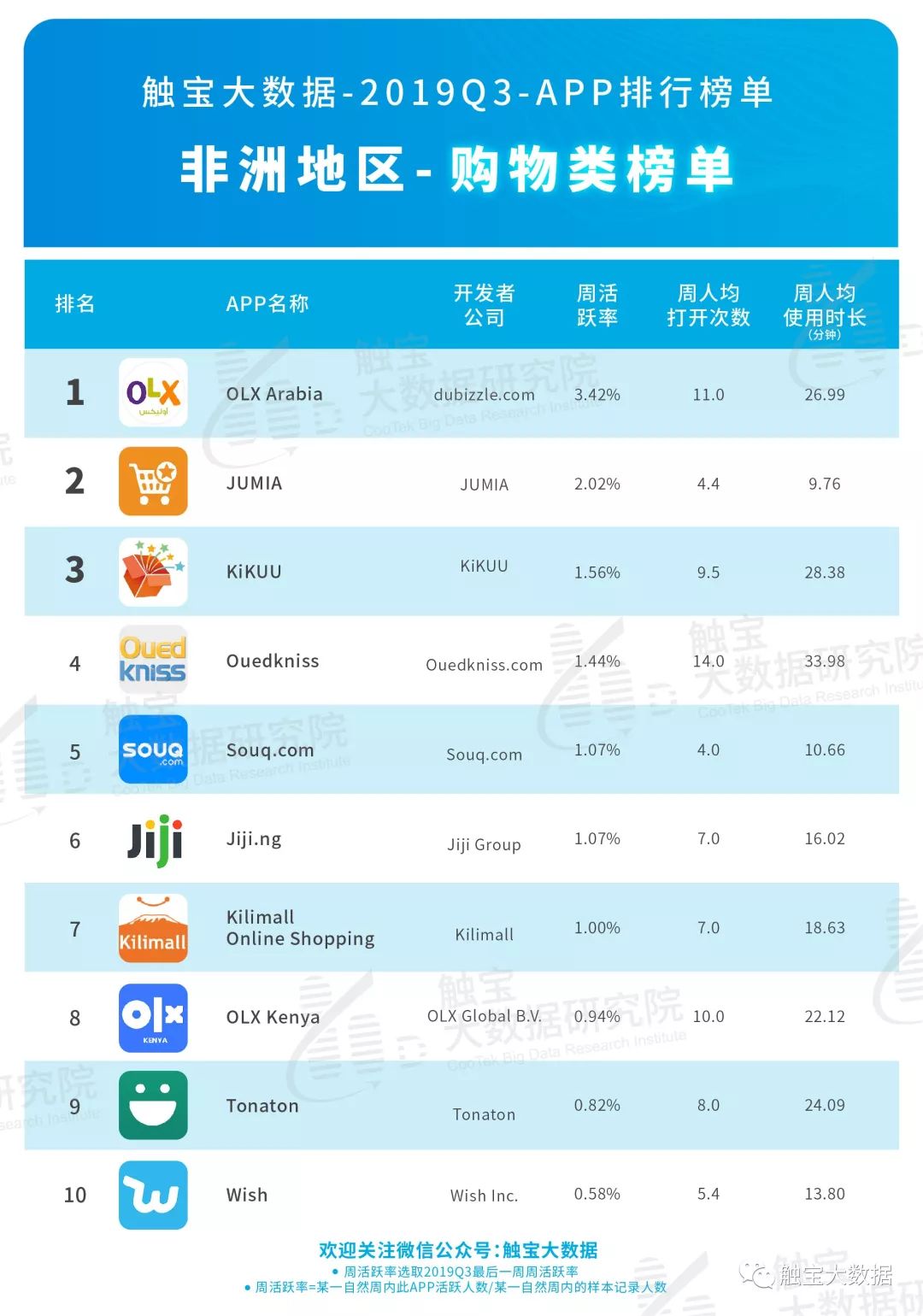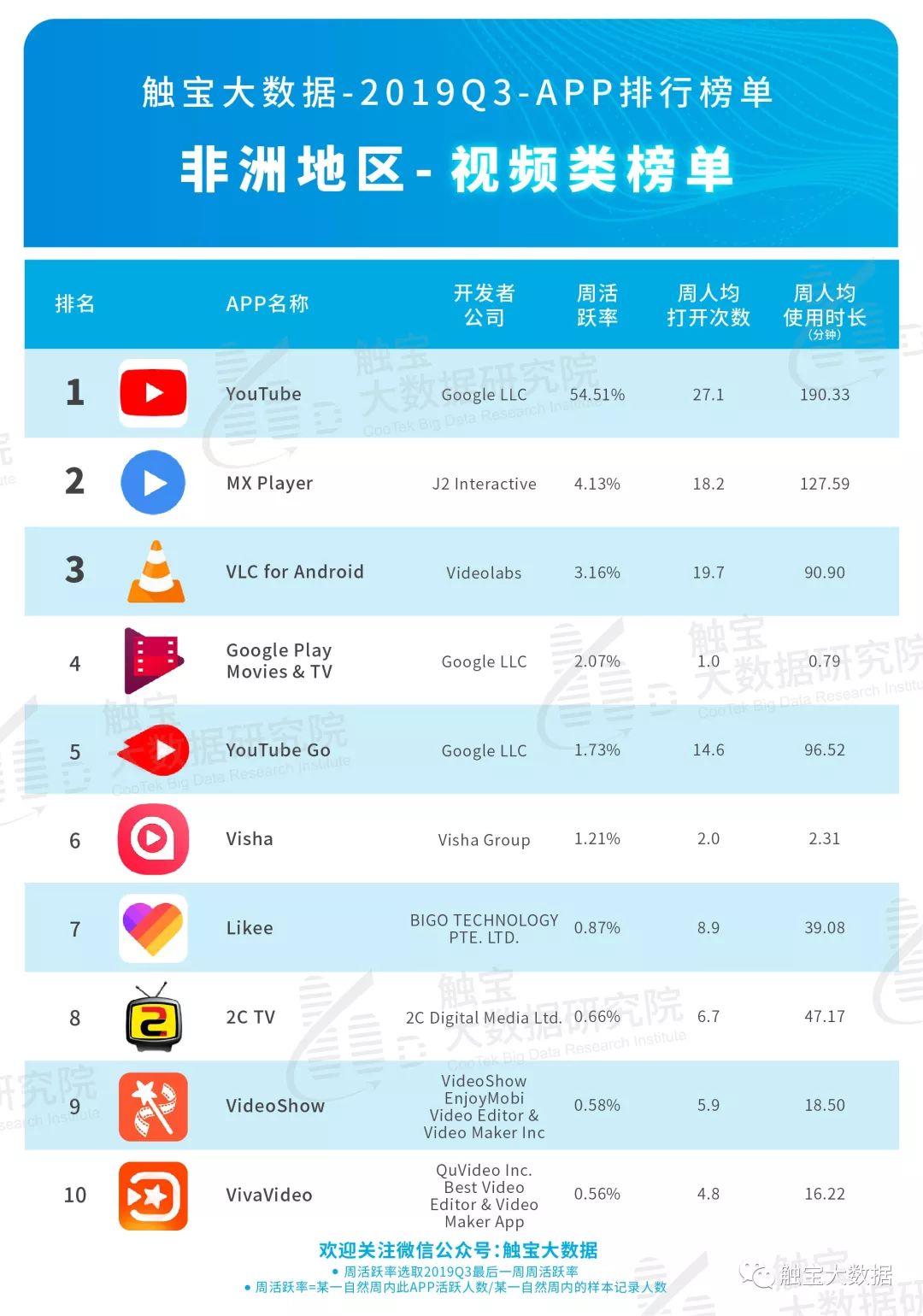 触宝大数据:2019年Q3非洲市场APP排行榜 非洲地区在Q3短视频应用的渗透率与用户时长明显提升,代表越来越多的非洲用户拥有了视频社交的习惯,对于国内短视频开发者而言是个不小的机遇,在其他新兴市场的成功运营经验可以应用于此。此外在电商领域,国内跨境电商活跃率持续增长也代表国内产品在当地的竞争力。但目前非洲的基础设施及恶劣环境仍是这些蓝海领域需要克服的障碍。 热门领域结论: 随着非洲网络基础设施的发展和智能手机在当地的逐渐普及。短视频应用在非洲当地有了较大的发展空间,并成为了出海开发者掘金的领域,用户产出的积极性也使短视频编辑工具需求增长,出海应用 VivaVideo与VideoShow以工具属性的编辑应用为用户产出专业精品视频提供个性化服务。与第一季度相比,出海开发者在视频榜单top10中占比提高20%,在其他类型中短视频应用获客也较快,目前用户接受度较好。非洲地区人口数量较多,且出生率仍然较高,长期内发展潜力较大。 出海电商仍然在持续发力,榜单上的出海电商在用户活跃度中仍有增长,尚未达到流量瓶颈。在非洲地区物价高,选择范围小的情况,国内的长尾商品及更精细的质量在当地有一定的竞争力。目前非洲地区的购物类头部应用较为稳定,也可看作在对应的电商在垂直市场中已经有了较高的护城河,已经一定程度上培养了区域用户的用户电商消费习惯,用户转移成本较高。 非洲地区由于网络设备发展仍不完善,因此娱乐设施仍主要以各地区的部分与当地电视台合作的流媒体为主。此外由于宗教因素,当地宗教题材的流媒体也较多,在本土化过程中应予以重视。传音旗下的出海短视频应用Vskit进入娱乐榜Top10,硬件在当地的市场占有率使他们本地化运营的成本有所降低,且在短视频应用渗透率加速提升的情况下获客较为迅速。 更多阅读:触宝大数据:2019年Q2非洲市场移动应用APP排行榜触宝大数据:2020年Q1非洲市场APP排行榜触宝大数据:2019年Q2北美市场APP排行榜触宝大数据:2019年Q3海外移动应用报告触宝大数据:2020年Q1北美市场APP排行榜触宝大数据:2020年Q2北美市场APP排行榜触宝大数据:2020年Q1印度市场APP排行榜触宝大数据:2020年Q1东南亚市场APP排行榜触宝大数据:2019年第四季度海外应用市场报告触宝大数据:2019年Q3印度市场APP排行榜触宝大数据:2019年Q3东南亚市场APP排行榜触宝大数据:2019上半年海外移动应用市场趋势触宝大数据:街机游戏魔性玩法获客,新用户蓝海值得关注触宝大数据:耳朵经济成为新金矿,音频自我表达风潮兴起蝉大师:2021年3月热门移动应用排行榜