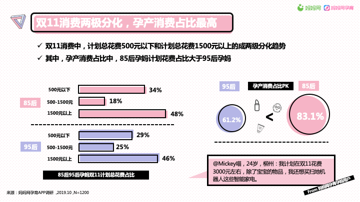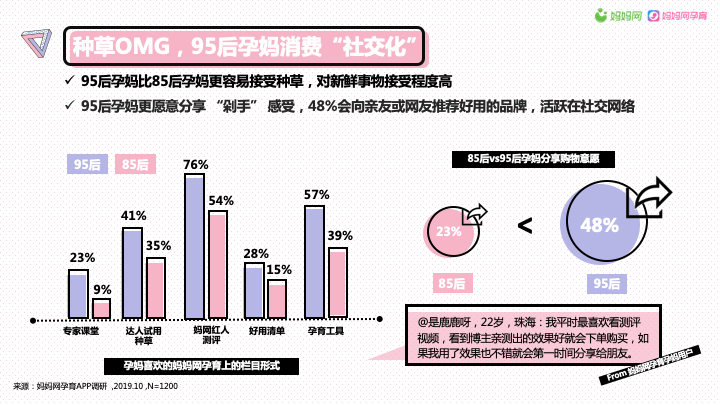 孕经济:85后&95后孕妈线上消费洞察报告 PDF版本将分享到199IT交流群,支持我们发展可加入! 更多阅读:2015年中国85后女性调查年轻盟:85后上升趋势及生活方式报告决胜95后:品牌如何搞定这一代年轻人NewsWhip:2019年95后内容消费趋势报告泛娱乐社交一代:95后社交行为洞察报告五张图告诉你美国95后上网都在做啥?极光大数据:95后的freestyle,看重诚信,择偶不将就女性就业趋势:95后偏好幼教/文员,重庆求职活跃度高大街网:95后求职意愿调研00后vs95后:2019年暑期职场生存报告赛诺: “95后”手机输入习惯研究分析报告我们和20位95后深入聊了聊,发现一些与APP相关的秘密2019年95后美妆消费报告联通大数据:2019国庆假期出游报告–95后热衷夜间游,淡旺季界限变模糊艺恩咨询:95后网络文学阅读真相调查报告