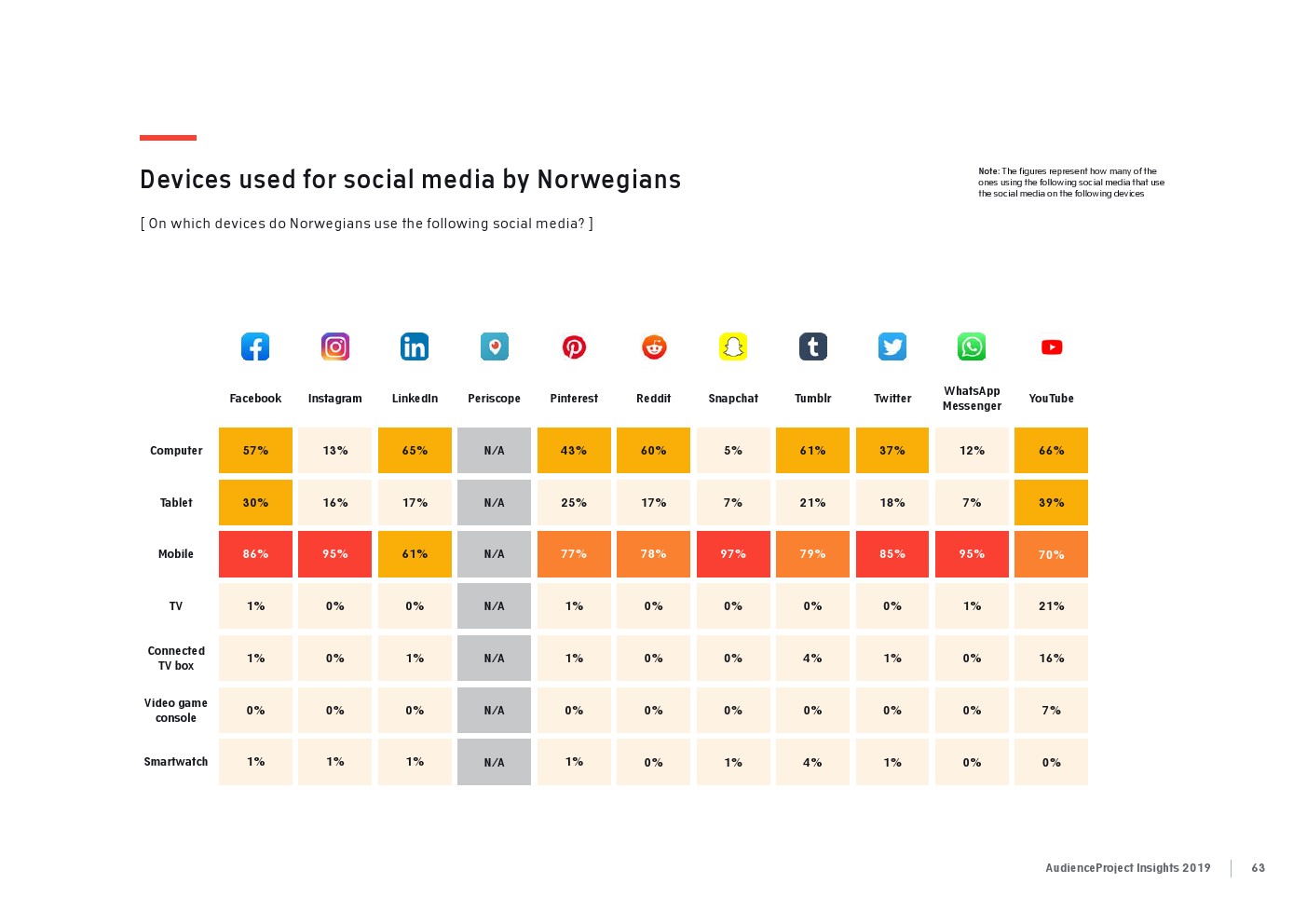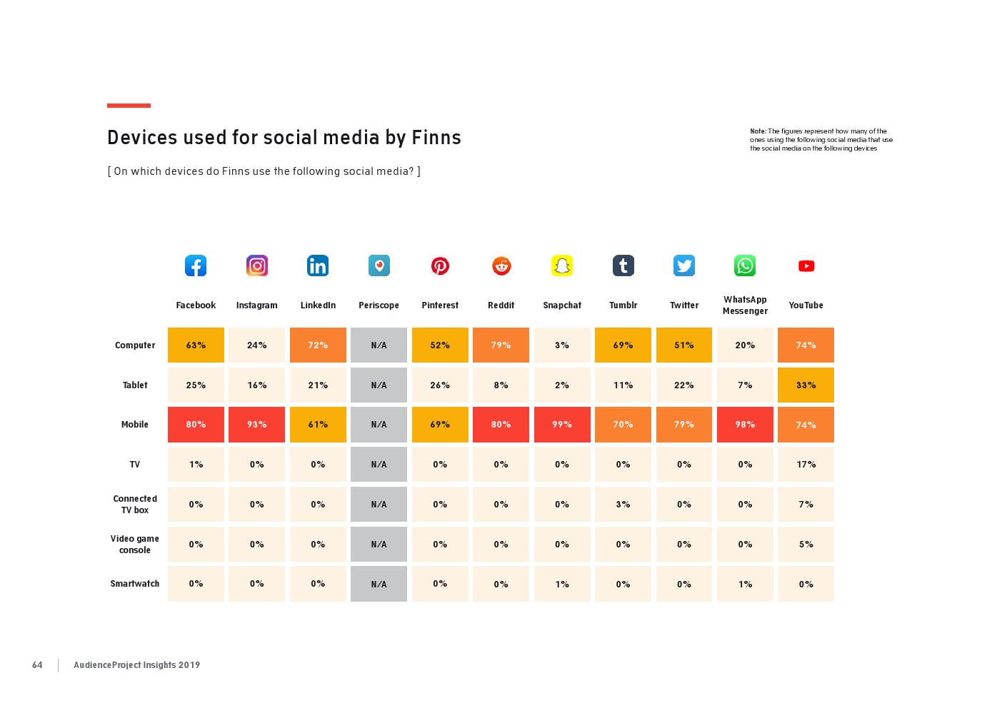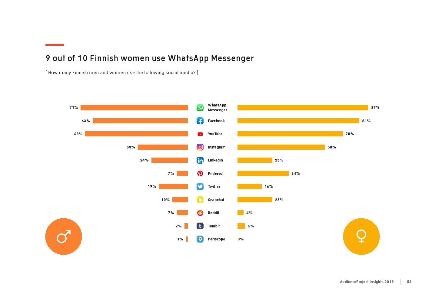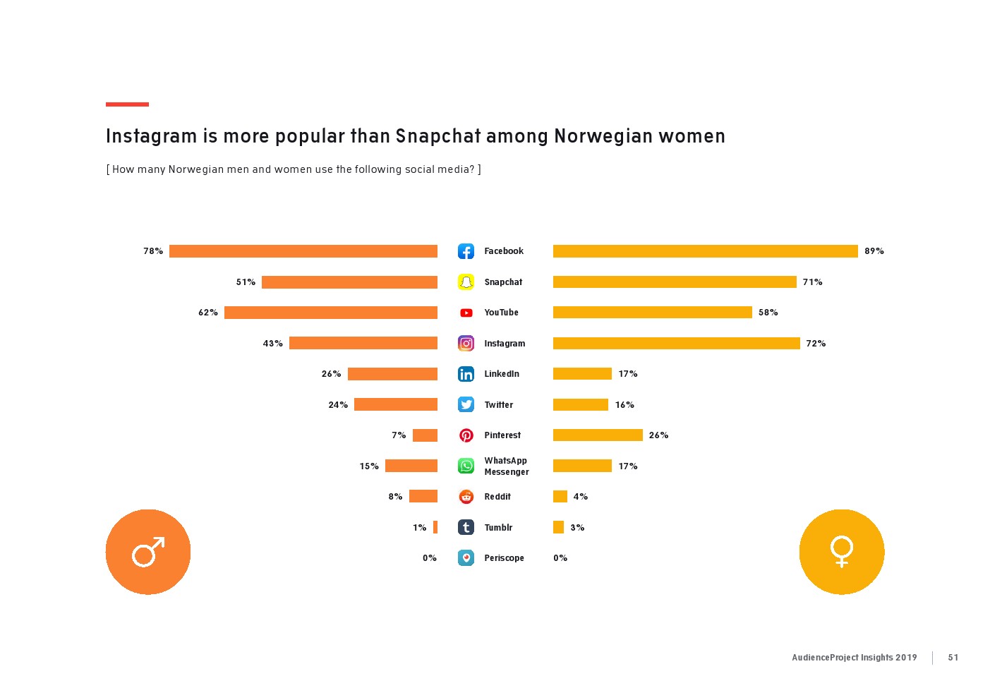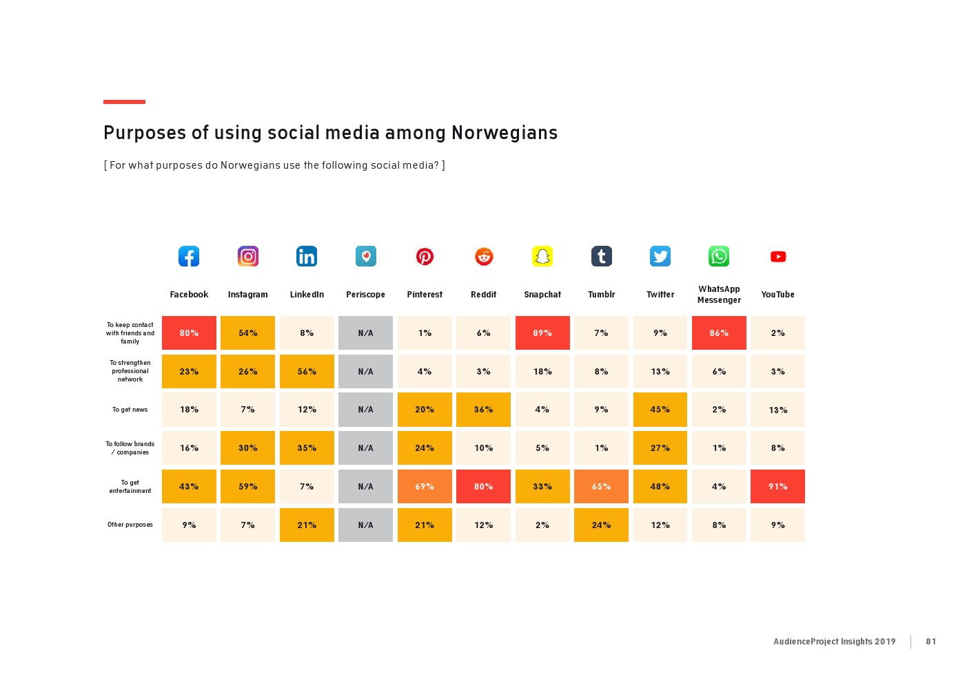 相比之下,老一辈人对Facebook的依恋程度更高一些。在接受AudienceProject调查的46-55岁的人中有3/10不能没有Facebook,而其他三个年龄组(26-35岁,36-45岁和56岁以上的人)中只有约1/3受访者(32%)表示,Facebook是他们无法离开的社交媒体平台。