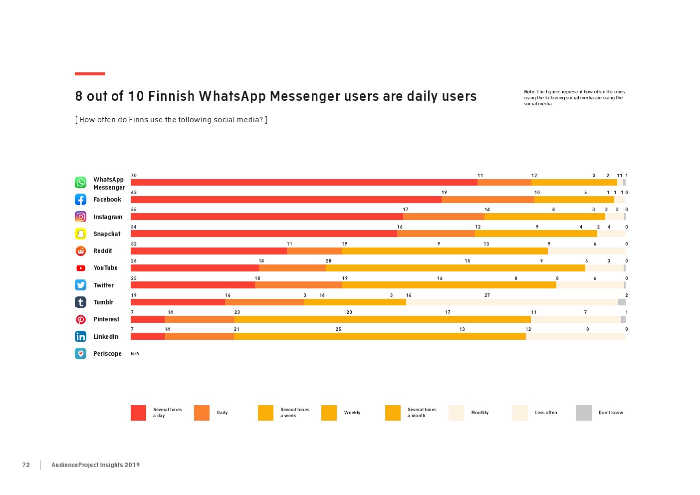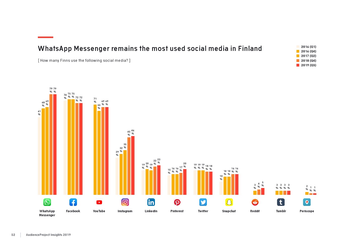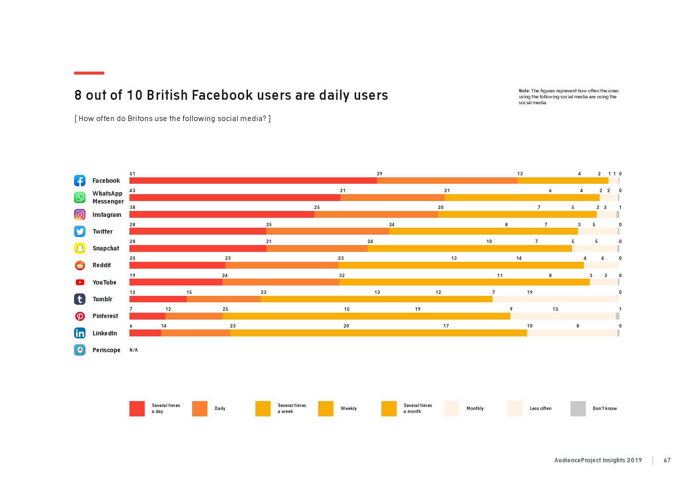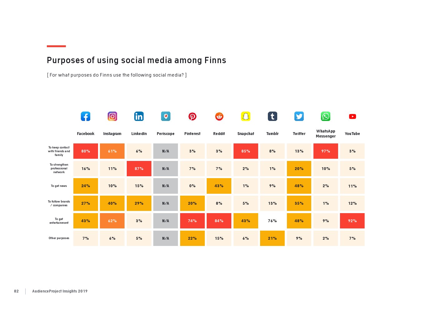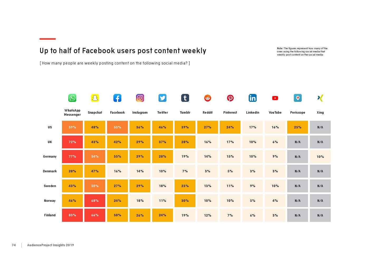 相比之下,老一辈人对Facebook的依恋程度更高一些。在接受AudienceProject调查的46-55岁的人中有3/10不能没有Facebook,而其他三个年龄组(26-35岁,36-45岁和56岁以上的人)中只有约1/3受访者(32%)表示,Facebook是他们无法离开的社交媒体平台。