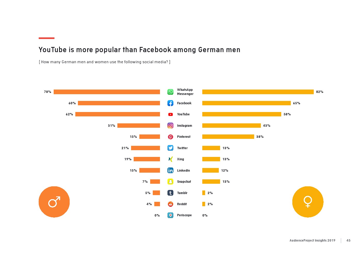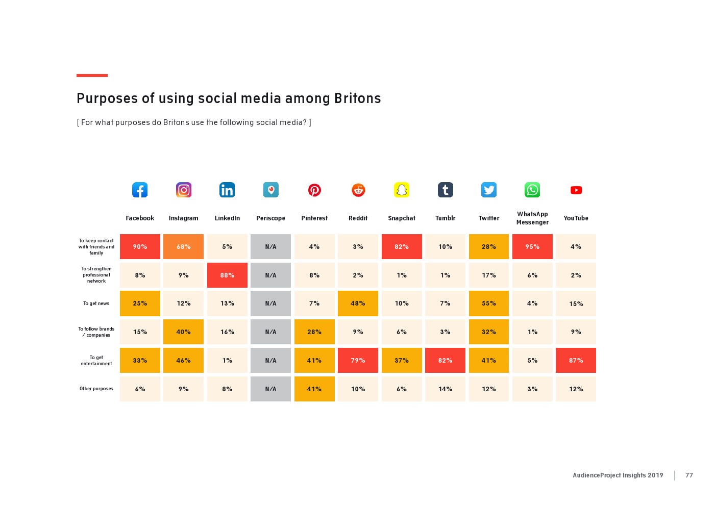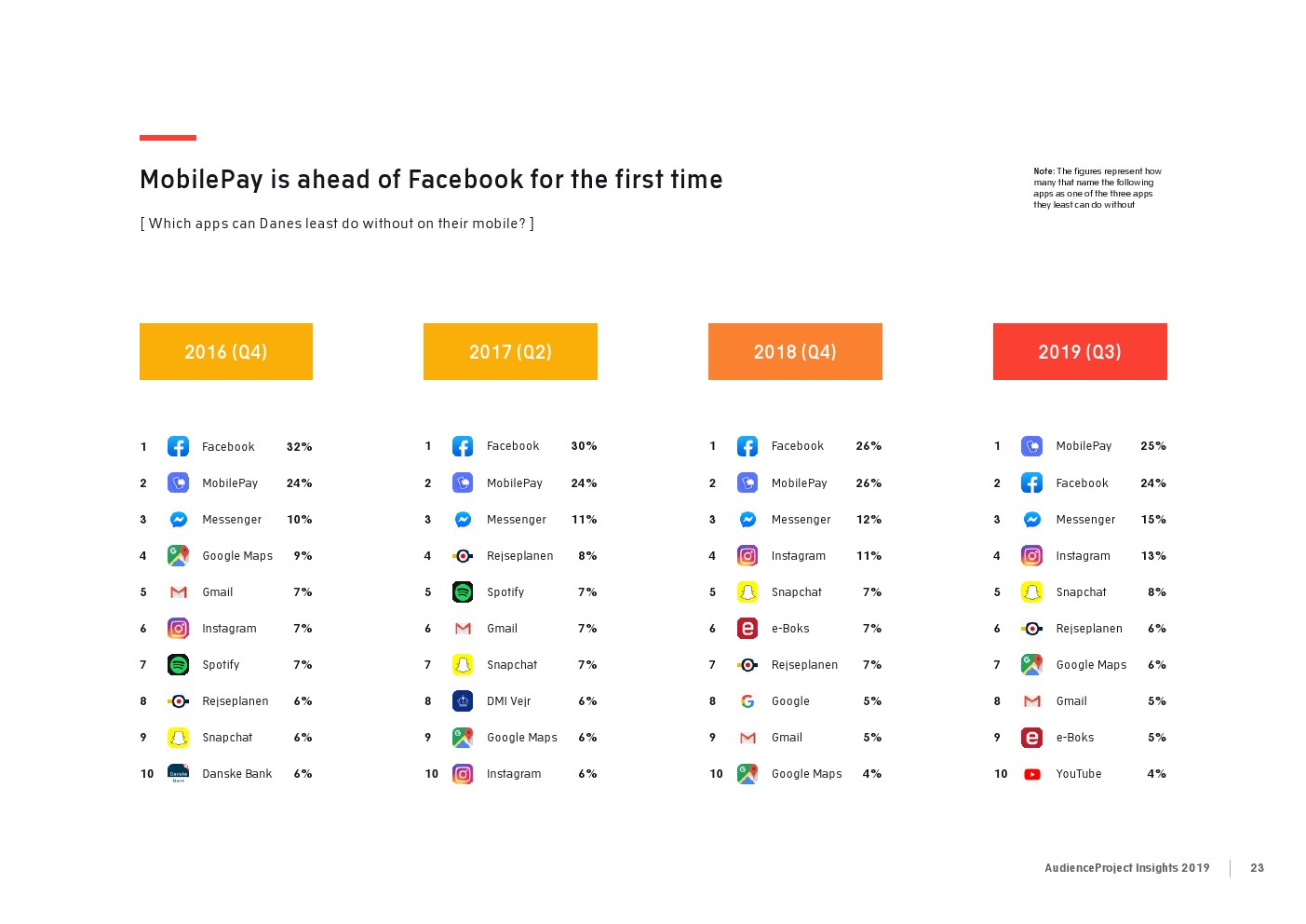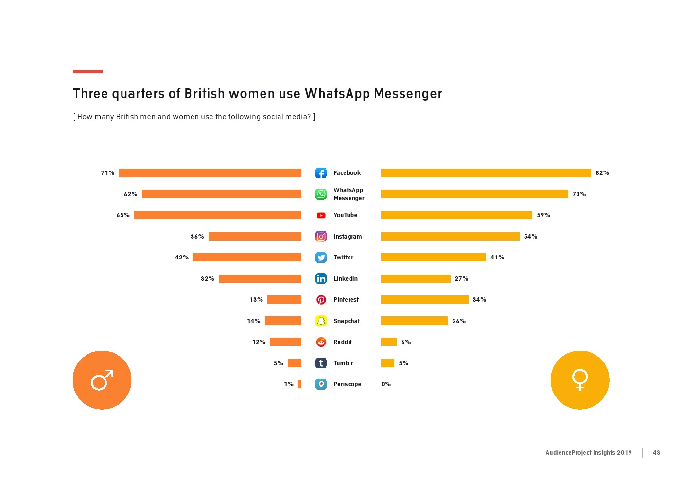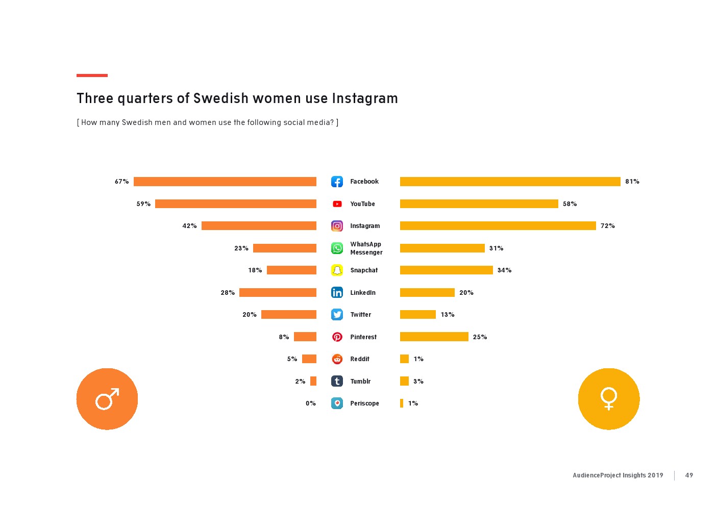 相比之下,老一辈人对Facebook的依恋程度更高一些。在接受AudienceProject调查的46-55岁的人中有3/10不能没有Facebook,而其他三个年龄组(26-35岁,36-45岁和56岁以上的人)中只有约1/3受访者(32%)表示,Facebook是他们无法离开的社交媒体平台。