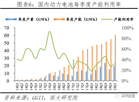 整体产能过剩,结构性问题突出。由于行业规模效应、政策扶持、资本涌入等因素,我国动力电池产能扩张迅猛,当前产能严重过剩,且高端产能不足、低端产能利用率极低。据国家863电动车重大专项动力电池测试中心主任王子冬披露,2018年我国动力电池总产能达260GWh,销售仅50GWh。据GGII统计,2019Q2我国动力电池企业整体产能利用率只有32.4%,2018年龙头CATL产能利用率高达86%,而排名第3的捷威动力产能利用率只有49%不到一半,第10名星恒动力只有25%。