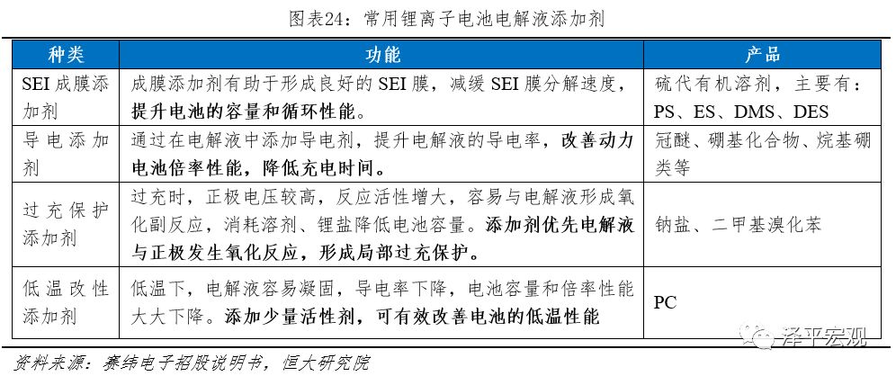 添加剂是电解液企业核心竞争力。电解液由溶剂、锂盐、添加剂三部分组成,其中溶剂、锂盐成分稳定,分别是DMC和LiFP6,添加剂品种多样,是企业核心技术竞争力。常用电解液添加剂主要有四种:SEI成膜添加剂、导电添加剂、过充保护添加剂、低温改性添加剂,对应提升动力电池的循环、倍率、安全、低温性能。隔膜在动力电池中,起着隔离电子防止短路,导通离子形成回路的作用,直接影响着电池的充电快慢和安全性。锂离子电池用隔膜生产工艺有干法和湿法两种,由于工艺差别较大(干法属于物理法,湿法属于化学法),两种生产出来的隔膜各性能参数有所不同。干法除了工艺简单、成本低廉、熔点更高等优势外,无论是在厚度、拉伸强度、孔隙率、安全性等方面皆比不上湿法隔膜。