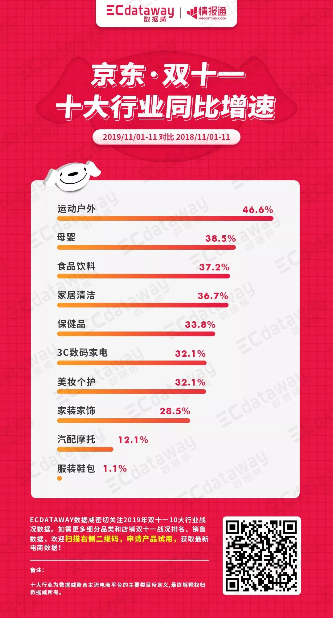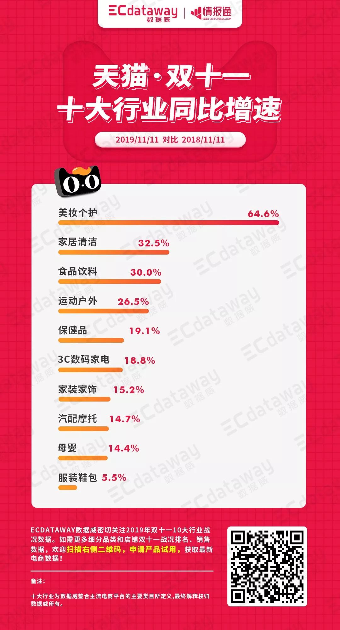 2019年双11刚刚落下帷幕,在各大平台层出不穷的玩法加持下,消费者们再次以超强“剁手”实力刷新了销售战绩!下面就让电商数据服务专家ECdataway数据威通过盘点天猫与京东十大行业的销售额同比增速数据,结合行业TOP品牌榜单,来看看行业发展趋势,为各大品牌方提供进一步的电商市场研究方向。
