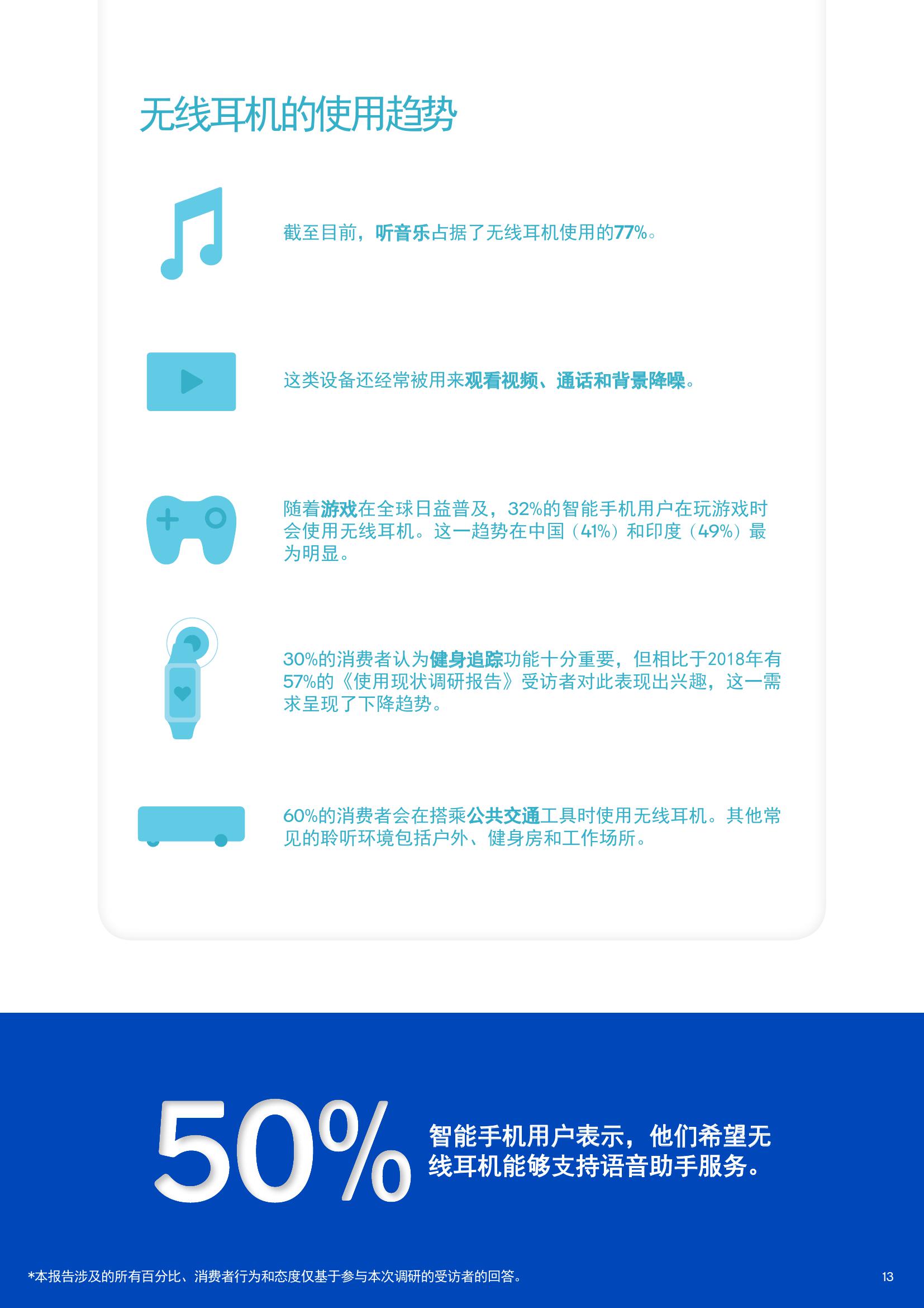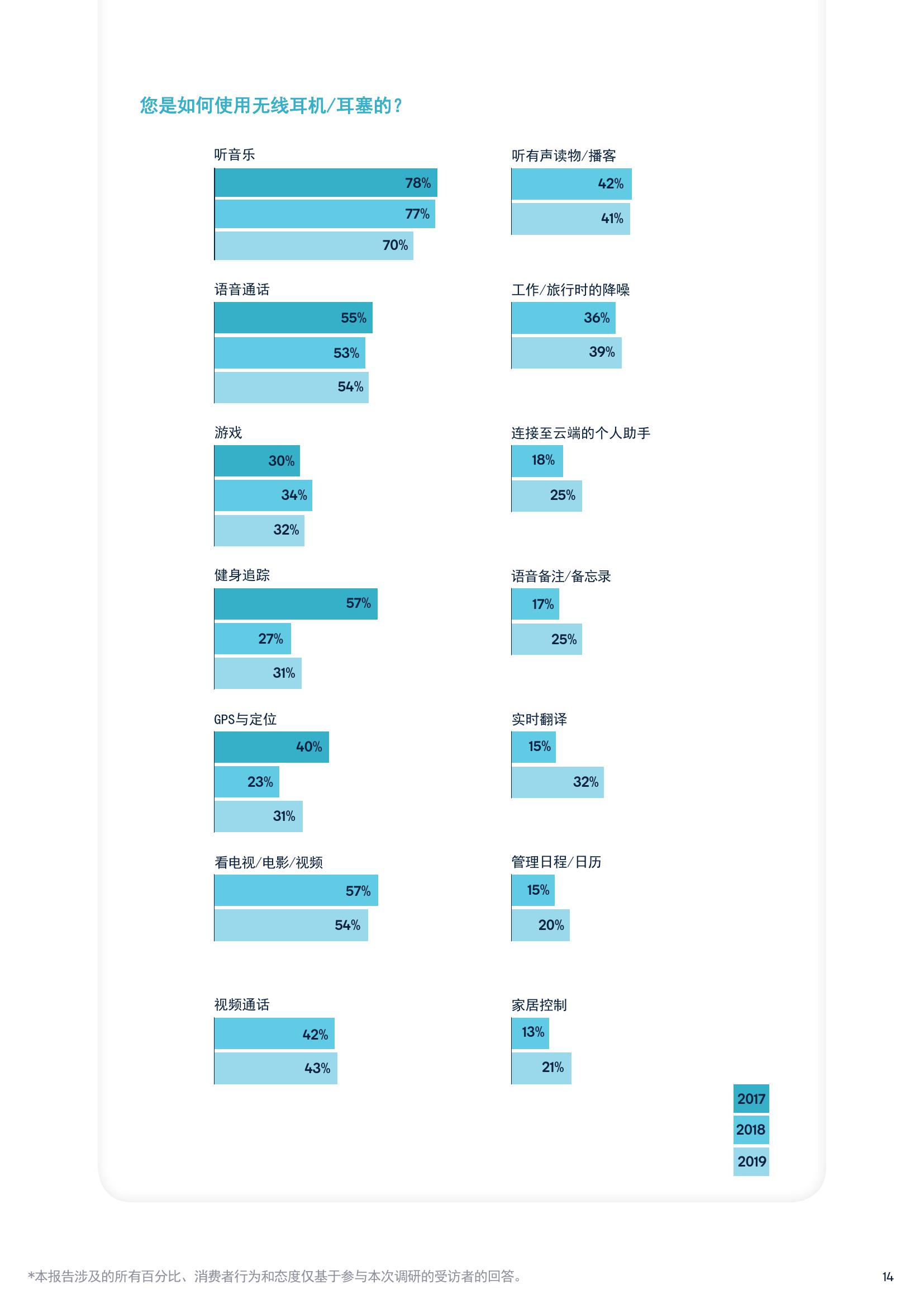 游戏方面,超过30%的消费者表示,会在玩游戏时使用无线音频设备。