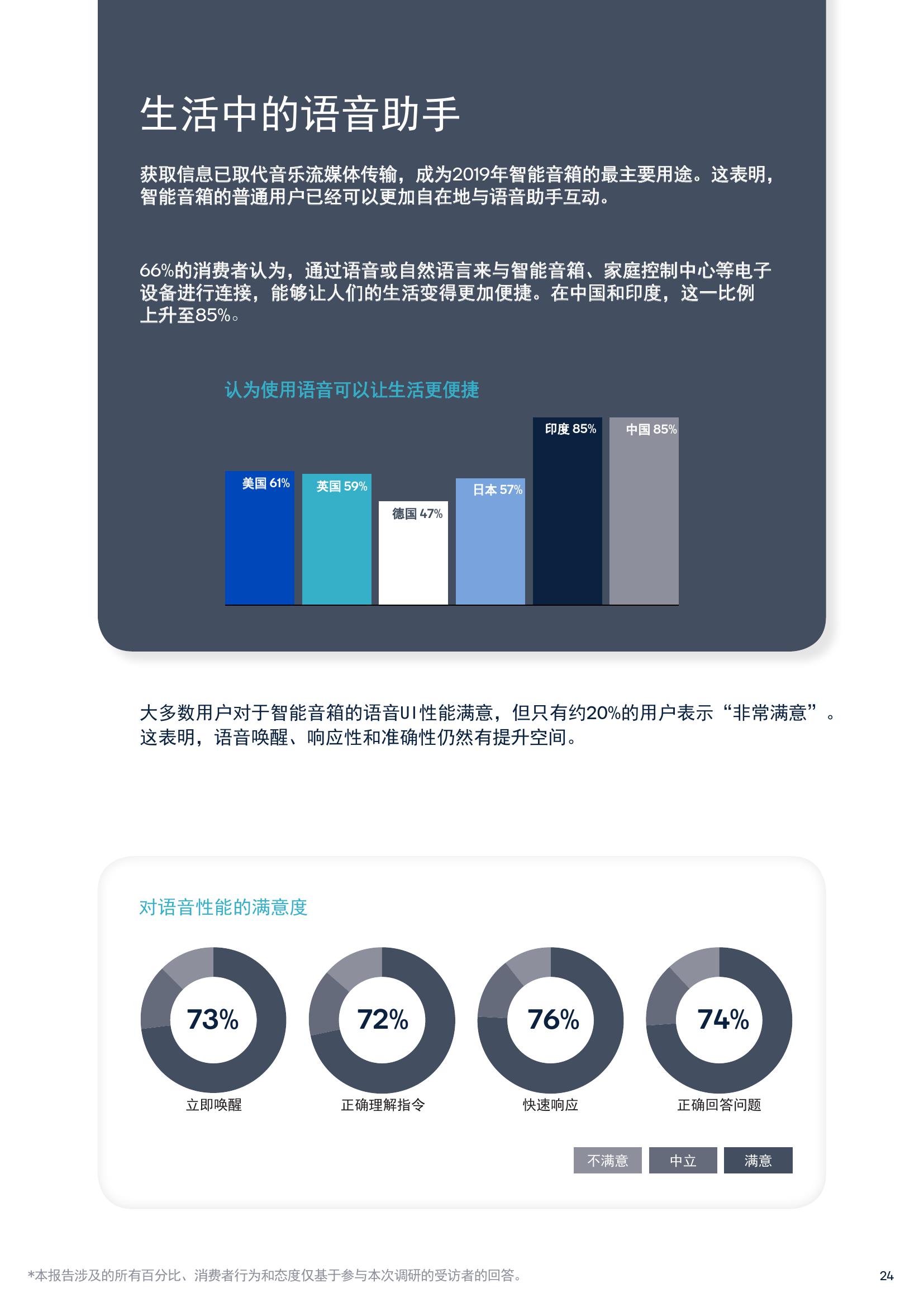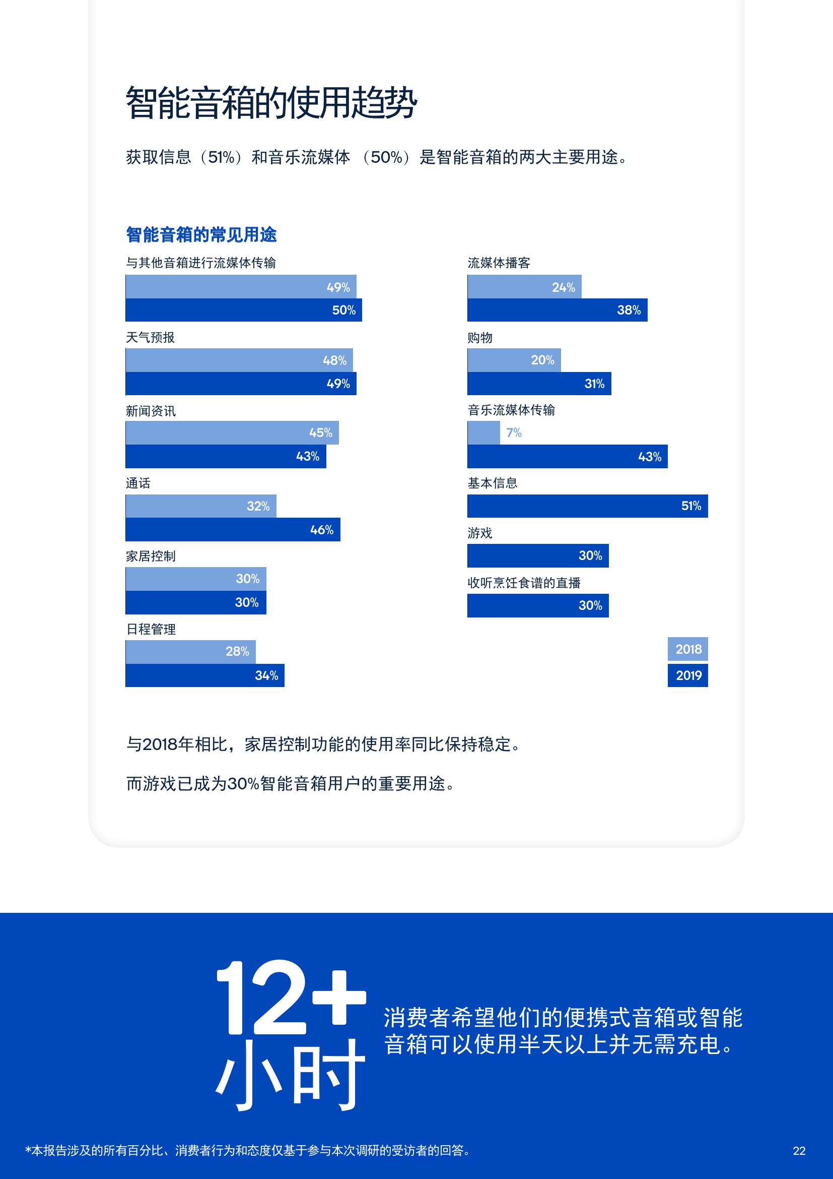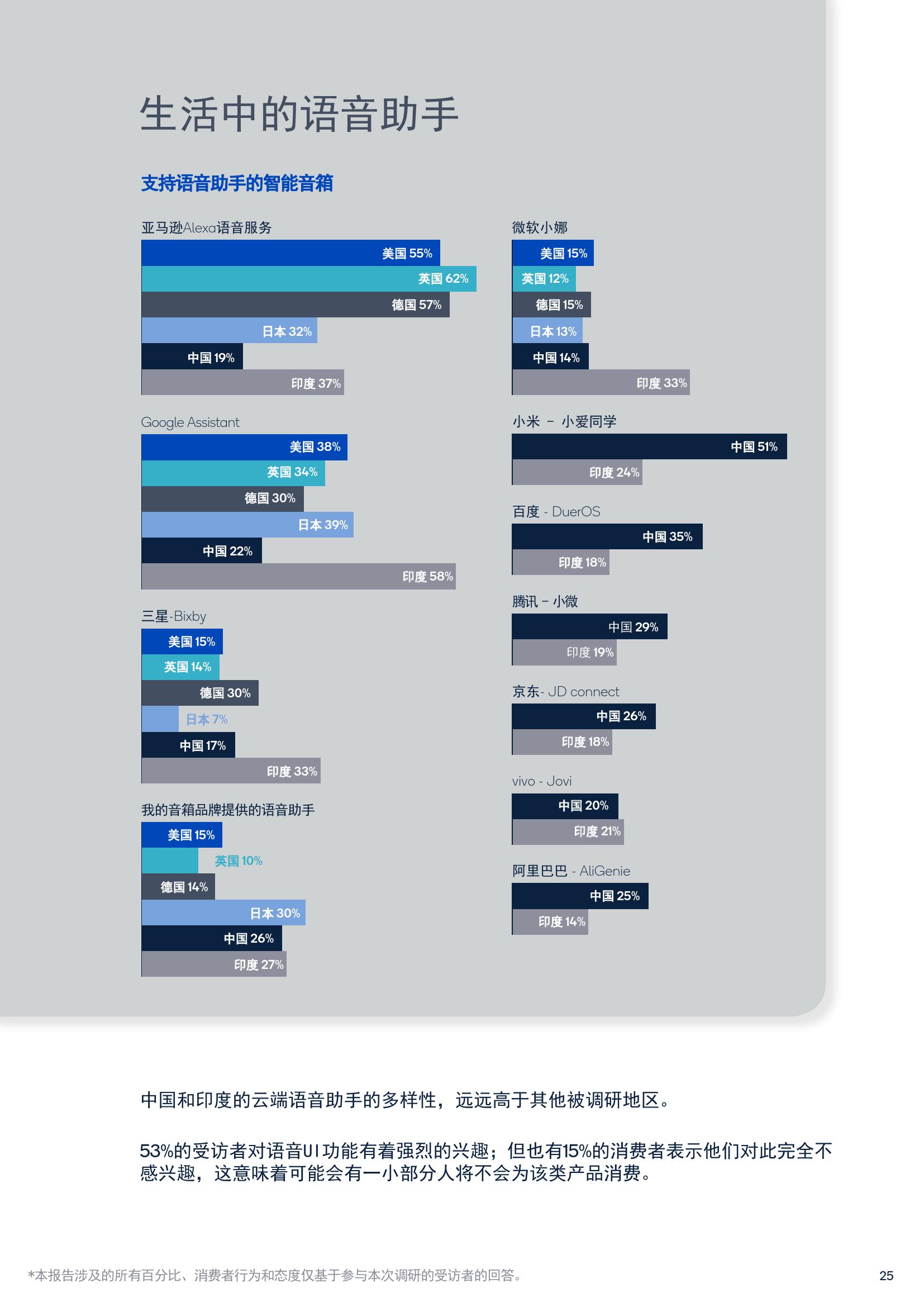 关于智能化产品,35%的受访者表示已经拥有智能音箱或智能条形音箱,而23%的受访者计划在未来12个月内购买智能音频设备。