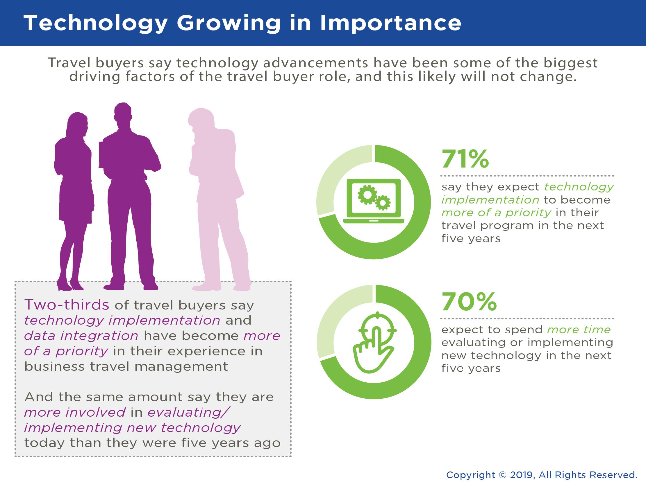 三分之二的差旅买家表示,技术部署和数据整合在差旅管理中的重要性日益增强。