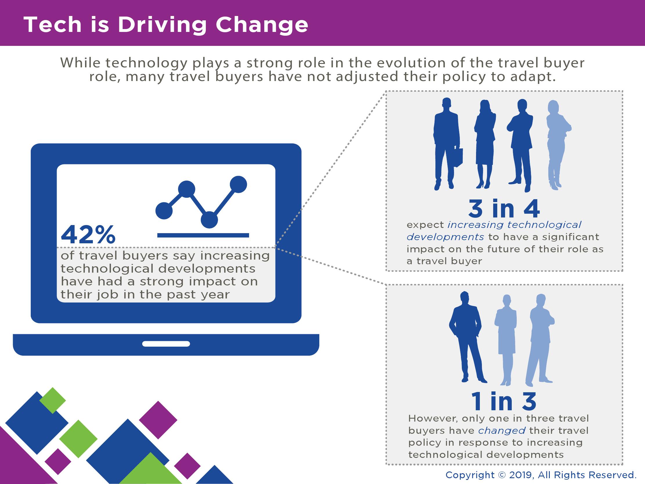 尽管影响巨大,许多买家并未因为技术进步改变差旅政策,只有32%的买家表示采取了变革措施。另一方面,54%的买家出于旅客安全考虑改变了政策。