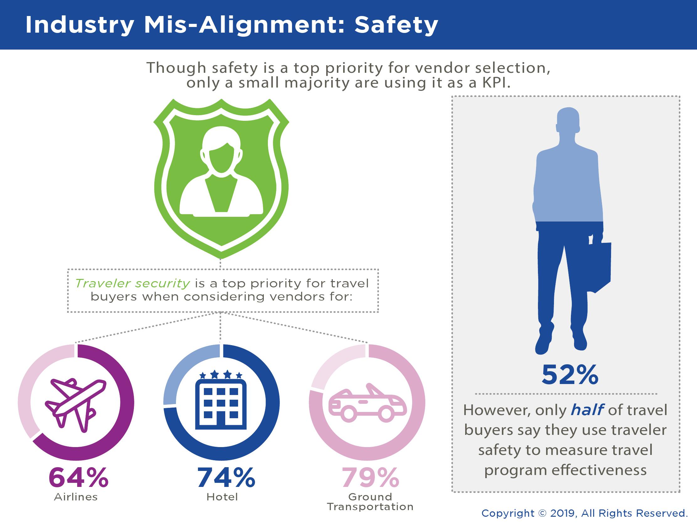 此外,差旅项目的成功与优先考虑因素并非总是挂钩。尽管旅客安全的重要性与日俱增,但只有刚过半数(52%)差旅买家会通过旅客安全指标衡量旅程效率。