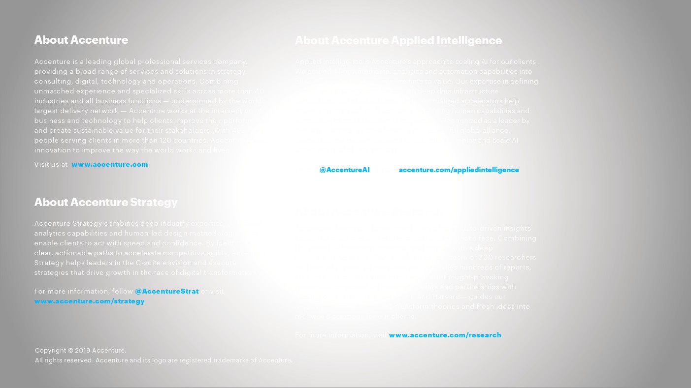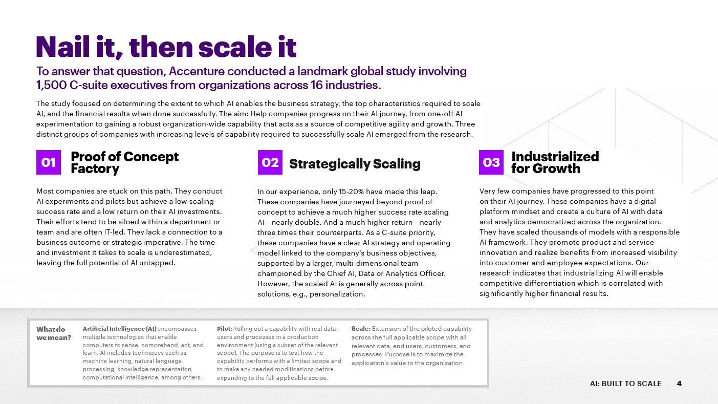 埃森哲(Accenture)发布了新报告“人工智能——规模化”,对16个行业的1,500名C级高管进行了全球调查,旨在了解公司如何在其组织内实施AI。