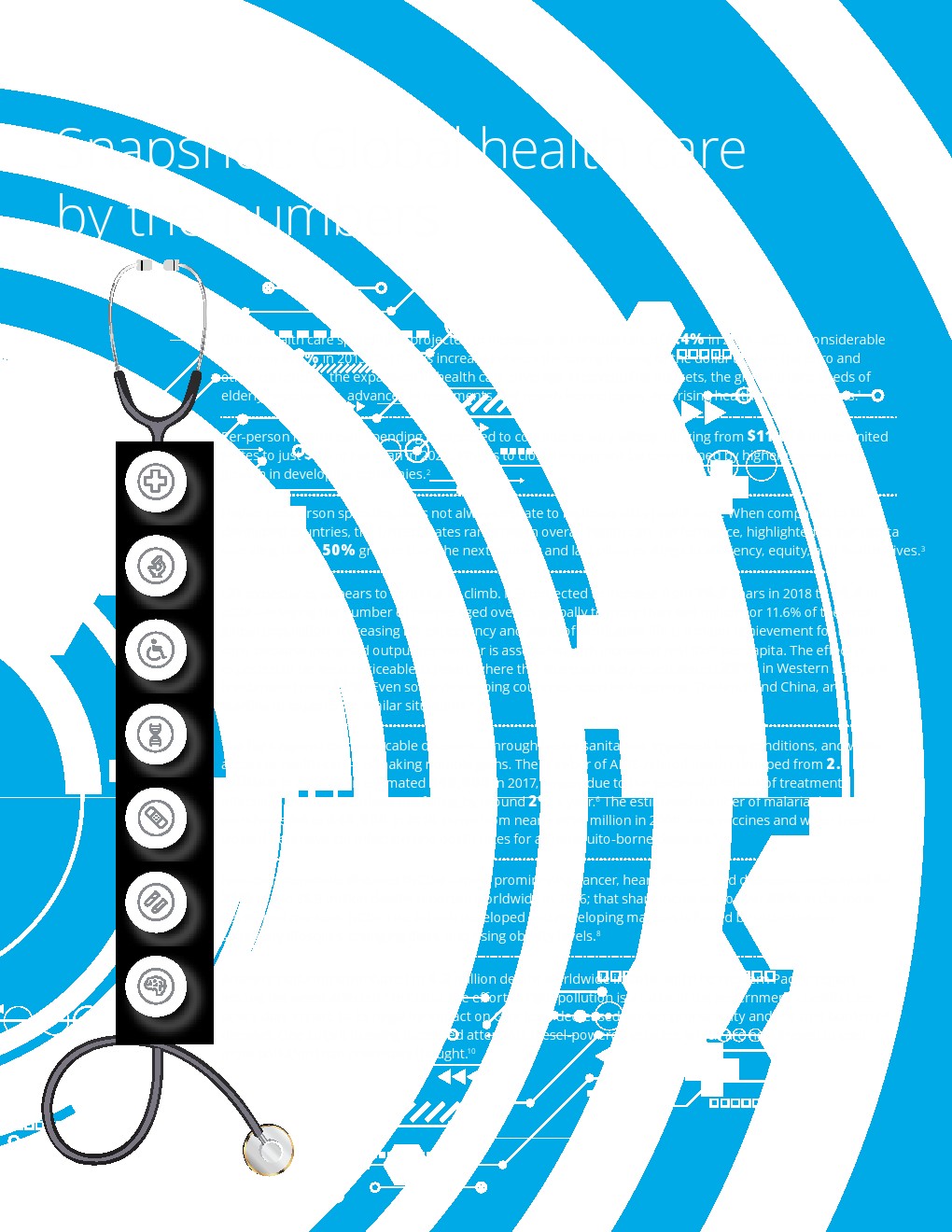 人均医疗保健支出有很大差异,从美国的11,674美元到巴基斯坦的54美元(2022年)。缩小这一差距的努力将因发展中国家人口增加而受到限制。