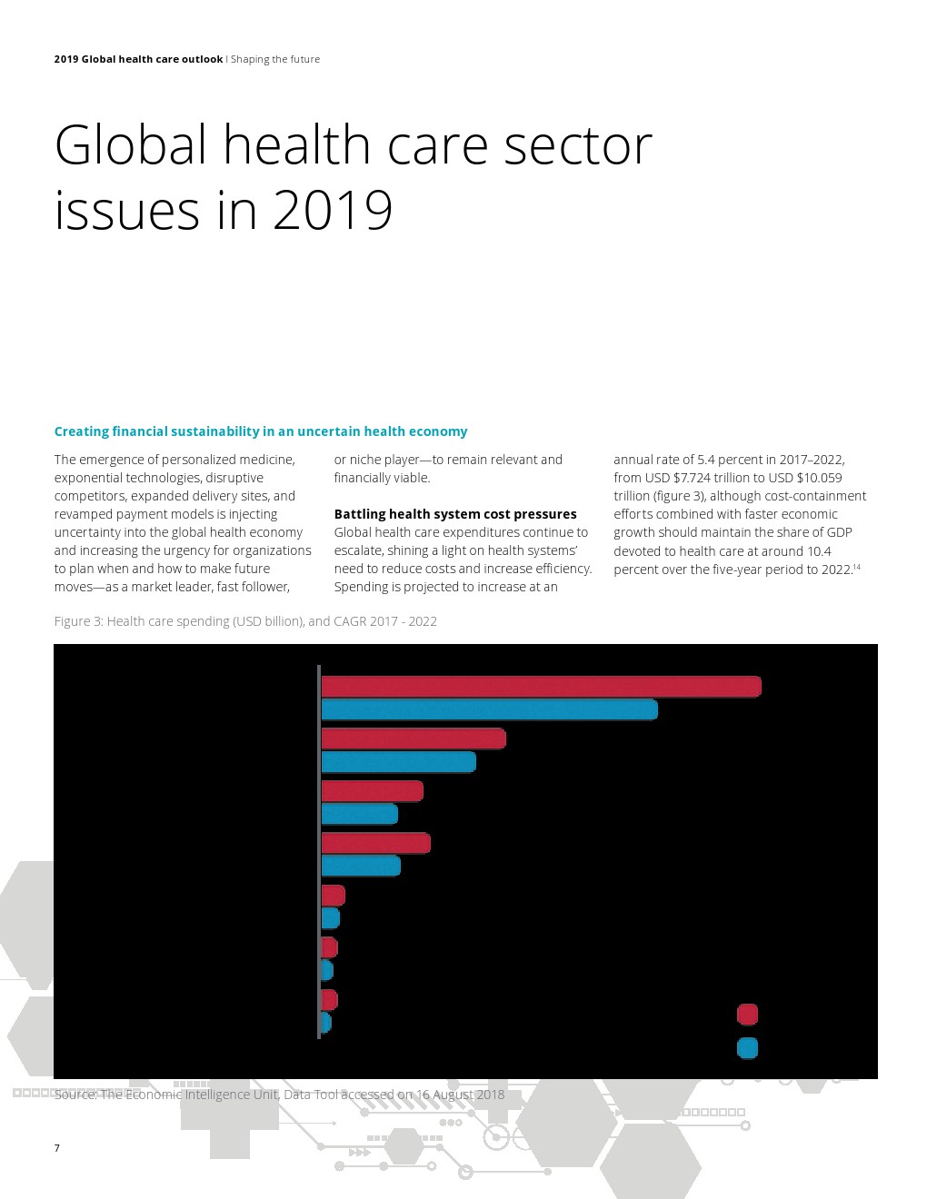 德勤发布了“2019年全球卫生保健概览报告”。预计2018-2022年全球医疗保健支出将以每年5.4%的速度增长,2013–2017年的复合年均增长率是2.9%。其他区是包括发展中市场的医疗保健覆盖面扩大,治疗和卫生技术的进步,以及医疗保健劳动力成本的上升。