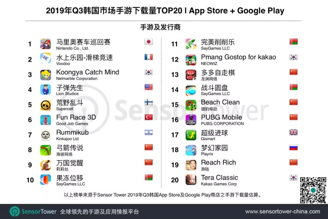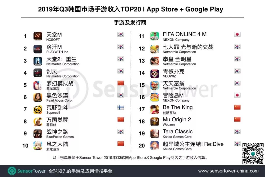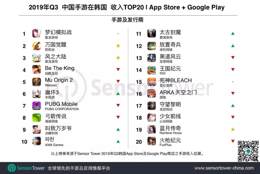 具体到中国手游方面,Q3有多款新品冲击韩国市场,这仍是国产手游出海最热门的市场。