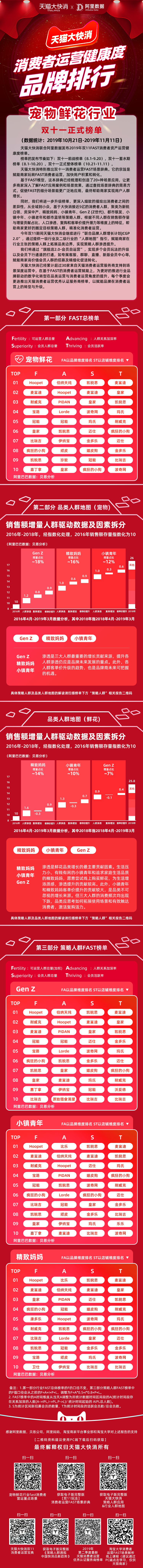 天猫FAST消费者运营双11正式榜单 天猫大快消联合阿里数据与贝恩咨询共同发布2019年双11FAST消费者资产运营健康度榜单。 此次榜单为双十一正式榜单,数据统计周期为:2019年10月21日-2019年11月11日。具体榜单如下: 美妆行业 个护行业 母婴行业 食品行业 酒水行业 生鲜行业 健康行业 家清行业 宠物鲜花 更多阅读:12点08分:2018年天猫双11交易额超1500亿!2017年天猫双11交易额1682亿易观:2025年双11天猫3C数码成交占比42%天猫:2025年双11首小时80个品牌成交破亿数据威:2020年618大促 全域数据解读——美妆护肤专场随手记双11大数据:人均多花10% 奶爸成生力军洛图科技:2025年双11智能门锁线上销量同比下降超20%Counterpoint:2025年双11中国智能手机销量同比增长3%“什么值得买”发布“双11”兴趣消费趋势洞察报告:兴趣驱动五大圈层重塑消费新生态什么值得买发布11月消费关键词:“双11”、雪季和文创Strategy Analytics:2022年双11期间智能手机销量为900万部 同比下降35%Sandalwood:2022年双11电商平台手机销量为常态3.7倍京东:2022年双11苹果、小米、华为、荣耀、iQOO 品牌手机在开门红中成交额1秒破亿元中国消费者协会:2021年“双11”消费维权舆情分析报告Trustdata:2020年中国“双11”电商购物节行业分析报告