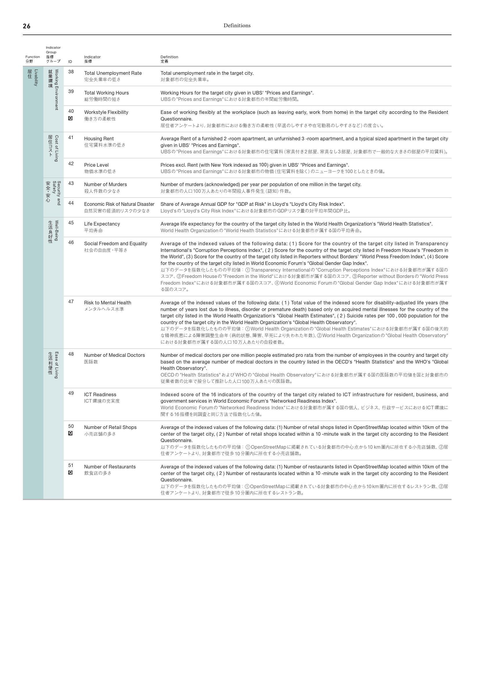- 北美城市洛杉矶(第12名)、波士顿(第25名)、芝加哥(第26名)和旧金山(第18名)在“科技奖项得主”指标表现抢眼,在研发类别均跻身前十。多伦多(第16名)和温哥华(第23名)在大多数指标都获得高分,尤其是“社会自由和平等”和“自然灾害的经济风险”指标。