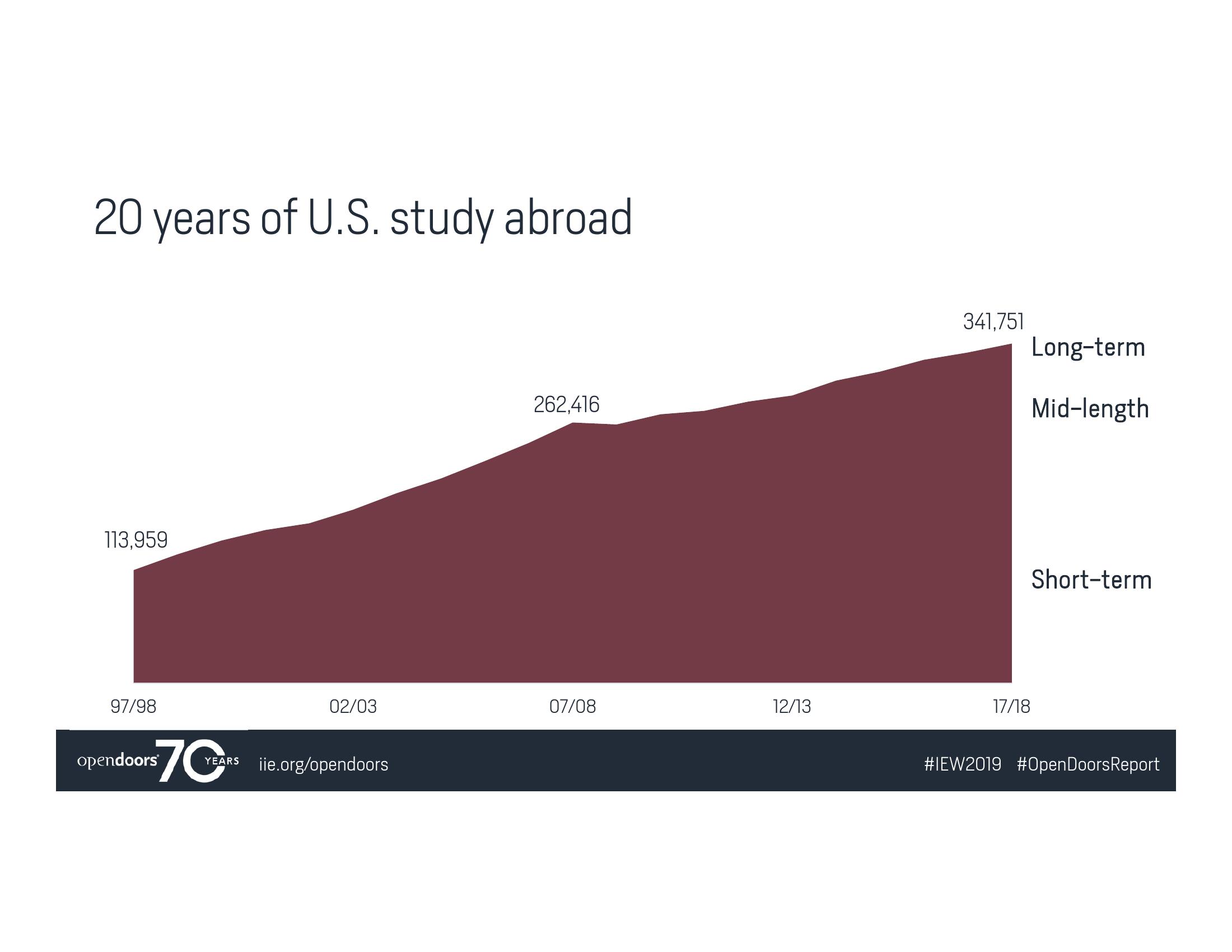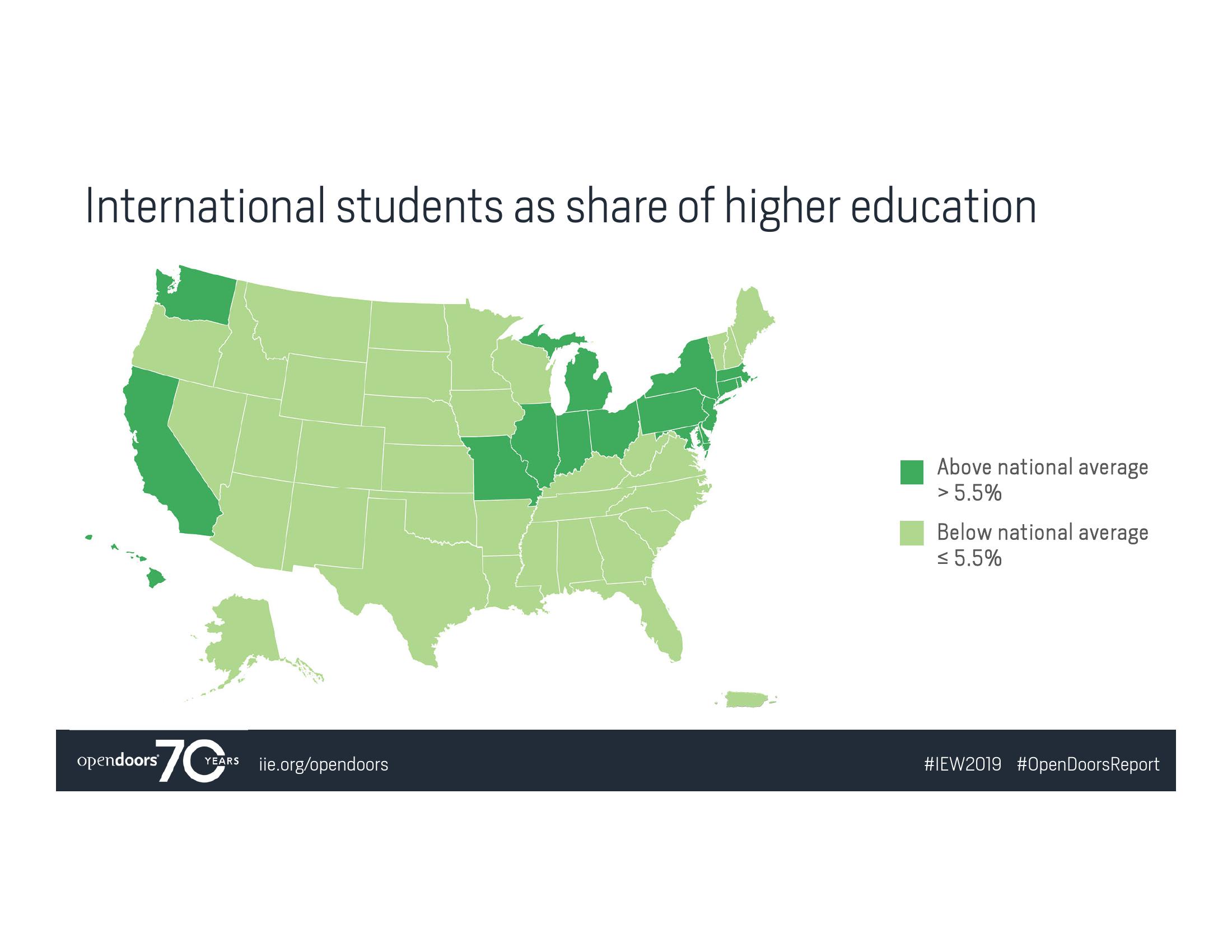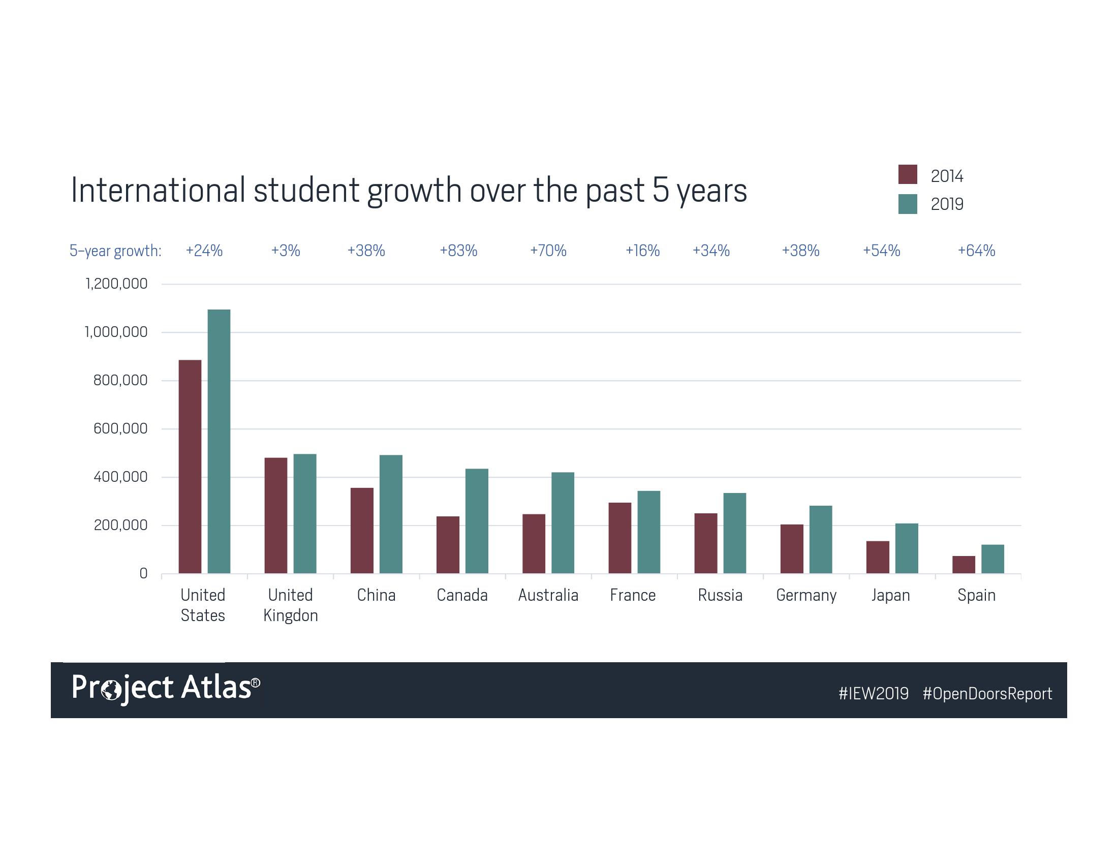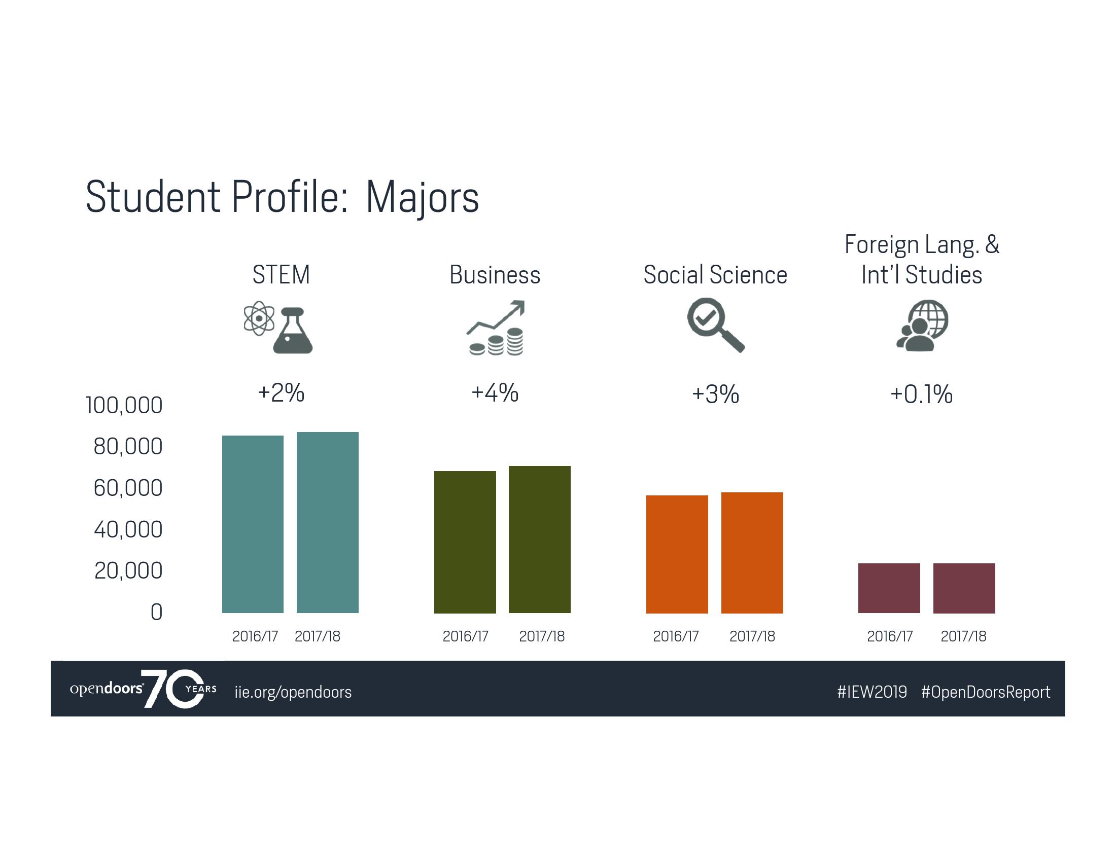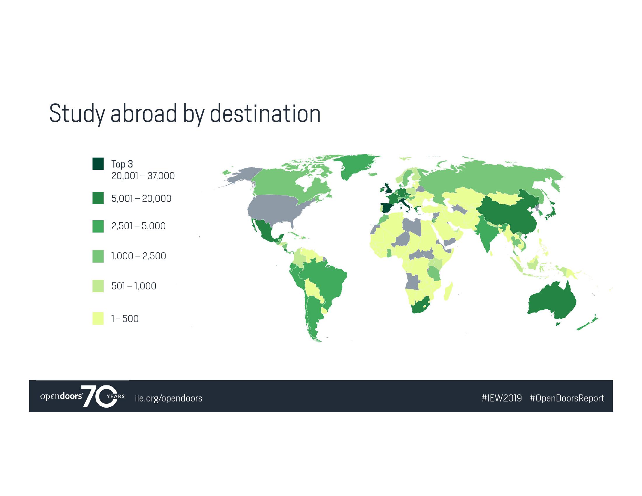美国国际教育协会IIE发布了《2019美国门户开放报告》,该报告显示在2018——2019学年中,美国国际学生人数创历史新高,达到1095299人次,连续4年超过100万国际学生。