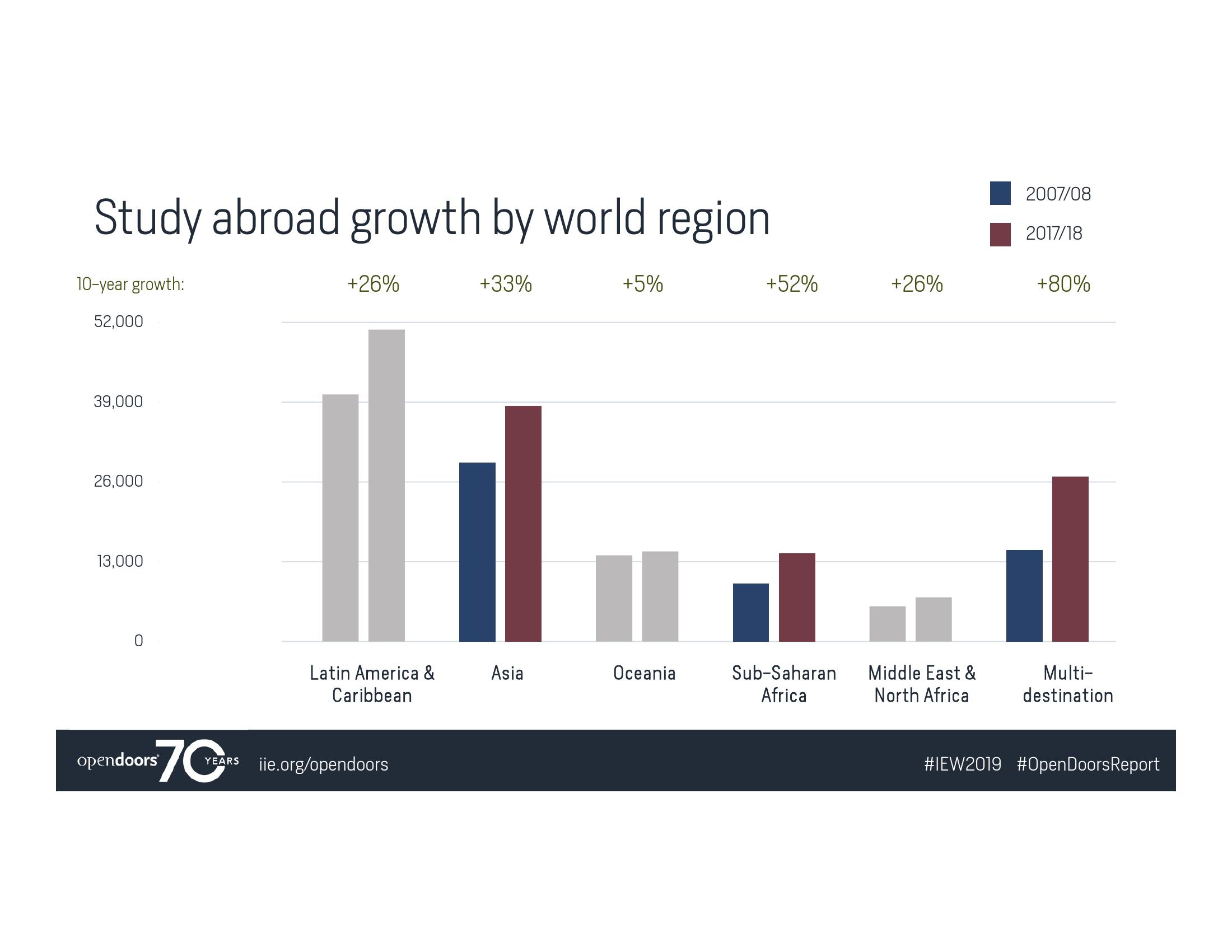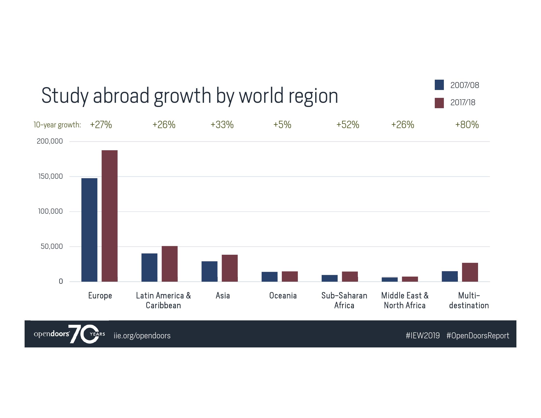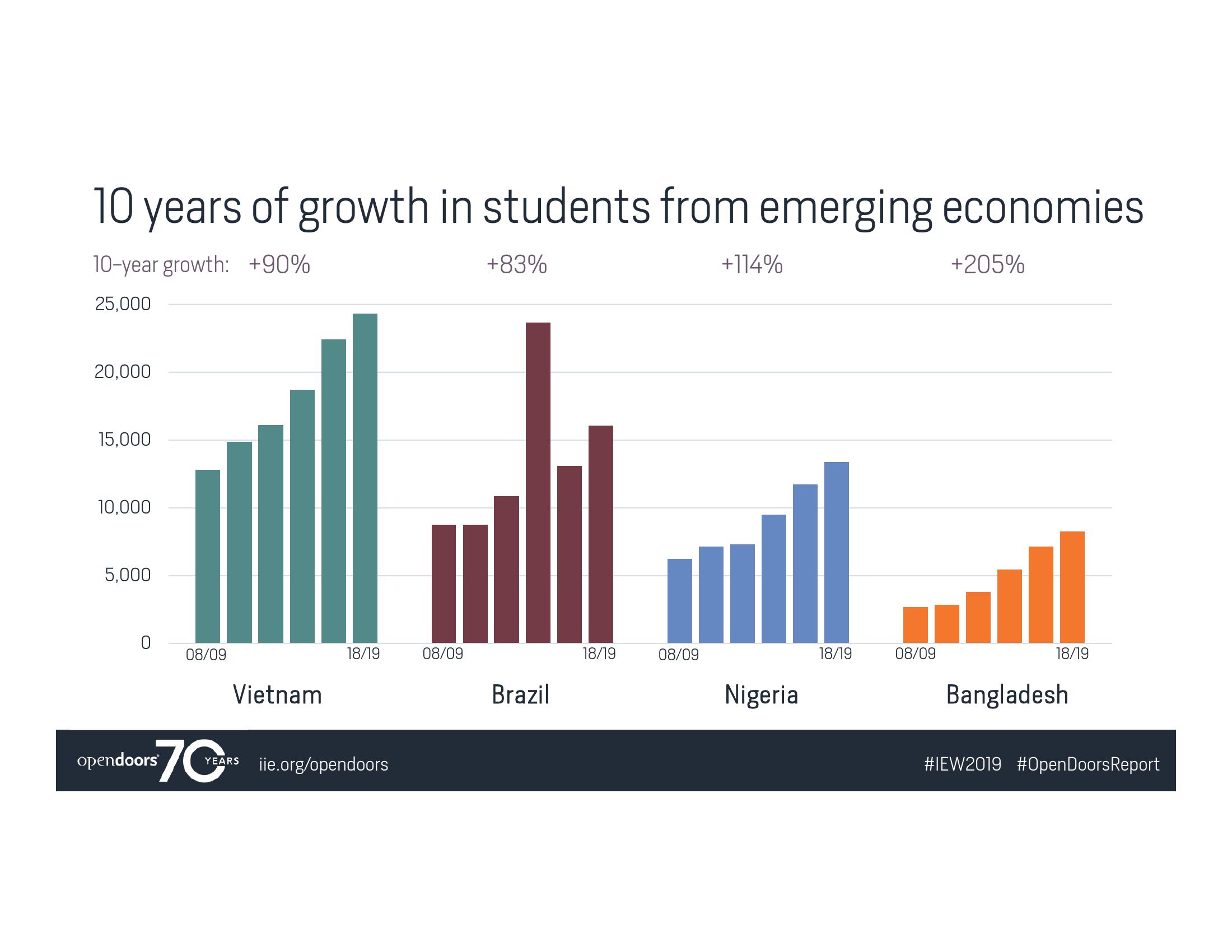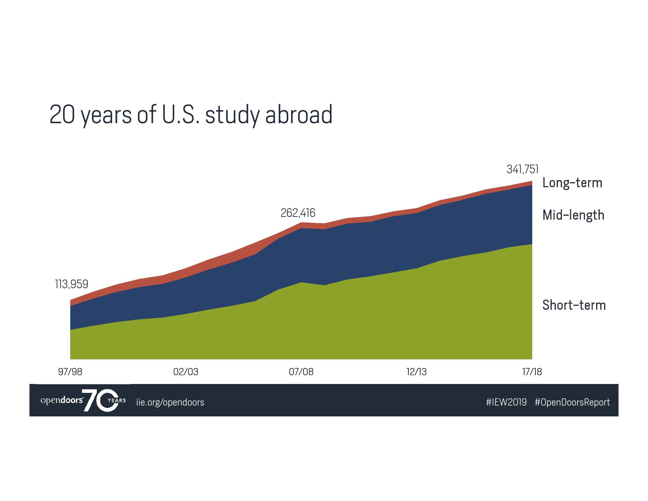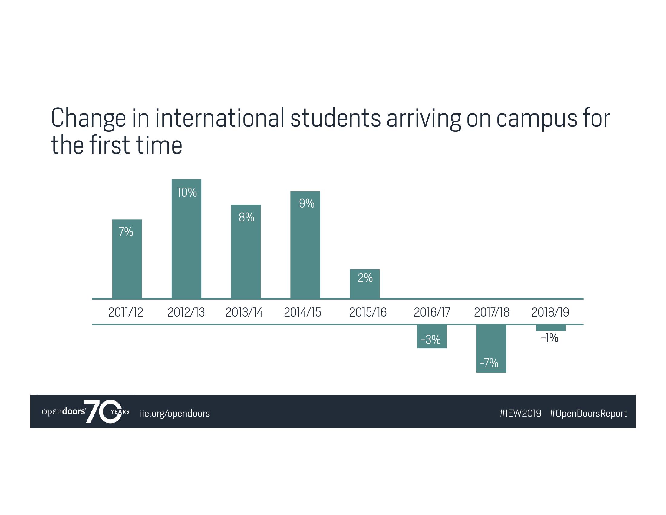 美国国际教育协会IIE发布了《2019美国门户开放报告》,该报告显示在2018——2019学年中,美国国际学生人数创历史新高,达到1095299人次,连续4年超过100万国际学生。