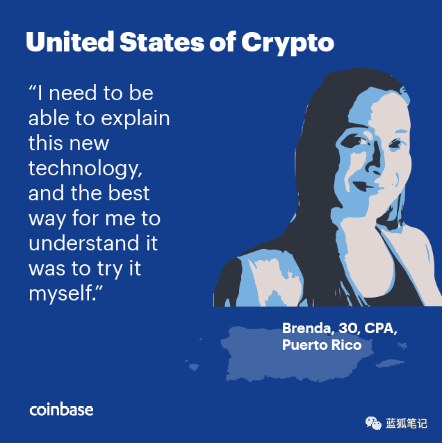 布兰达是一位30岁的注册会计师,当前居住在波多黎各。她最近开始练习,并注意到她所处的领域很少有关于加密货币的培训,因此,她购买一些加密货币,以便于帮助客户理解。她说:“我需要能够解释这项新技术,我了解它的最好的方式是亲自尝试。”