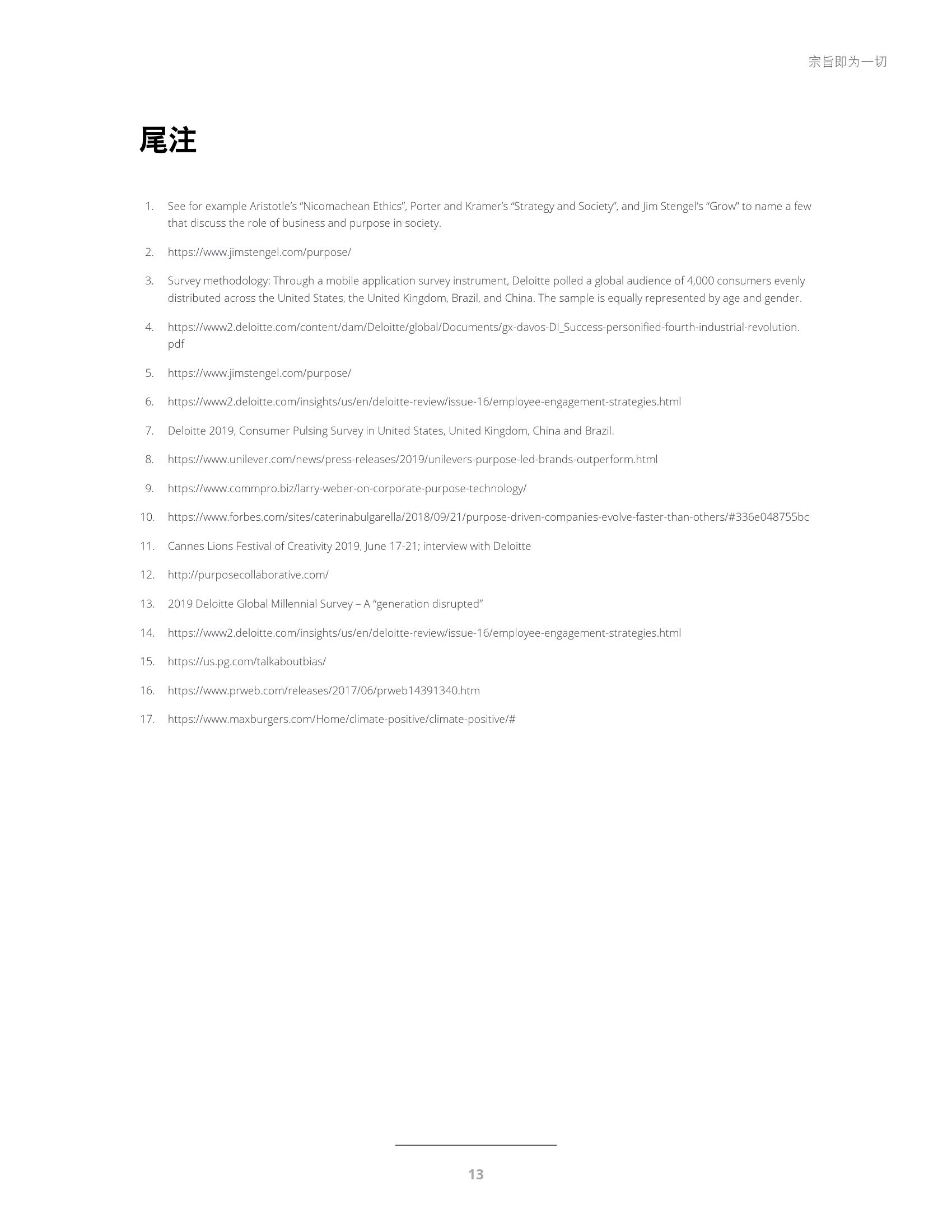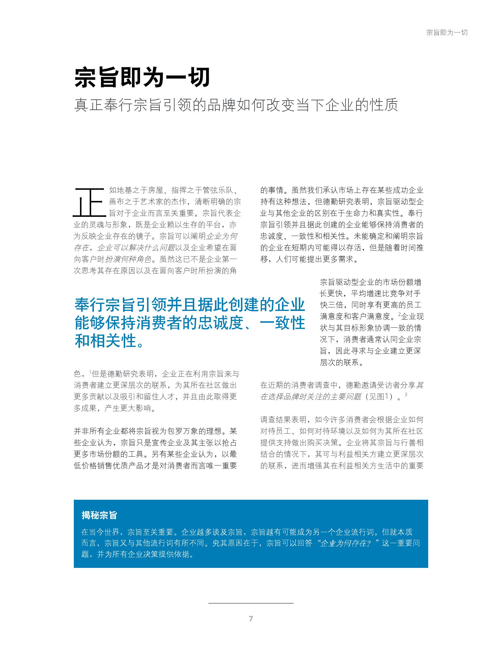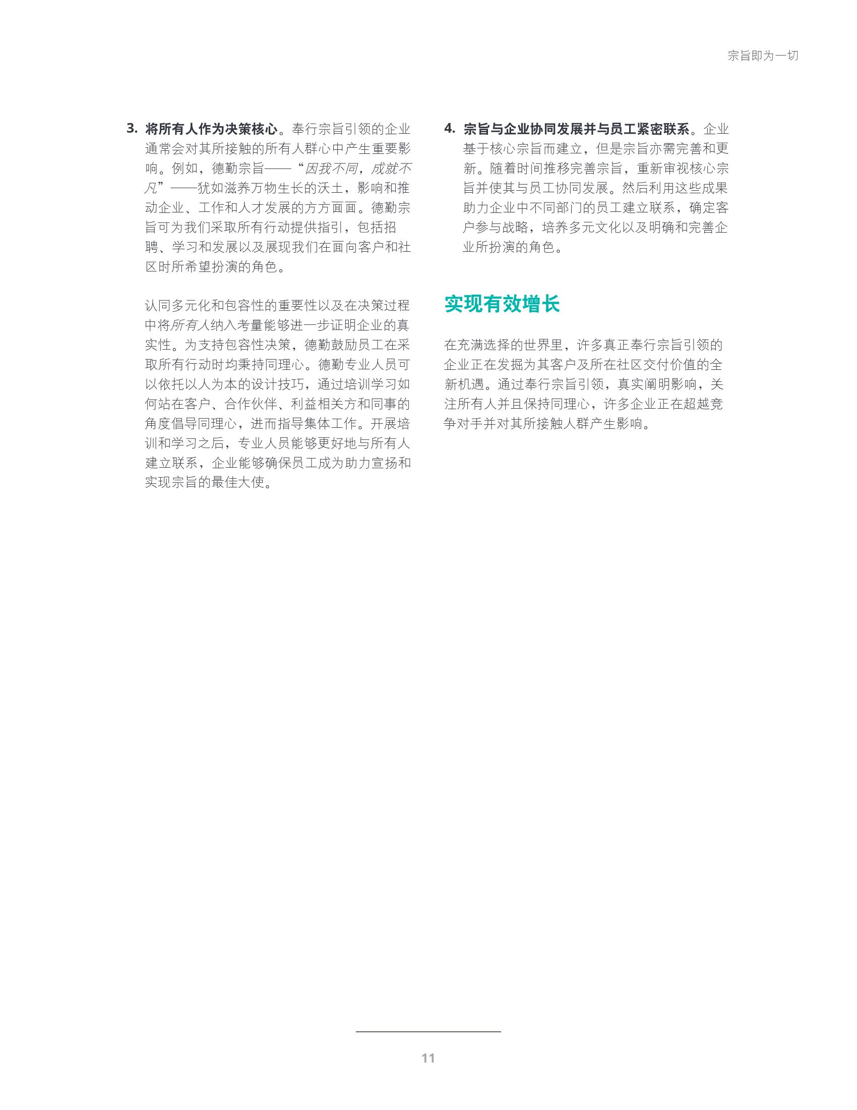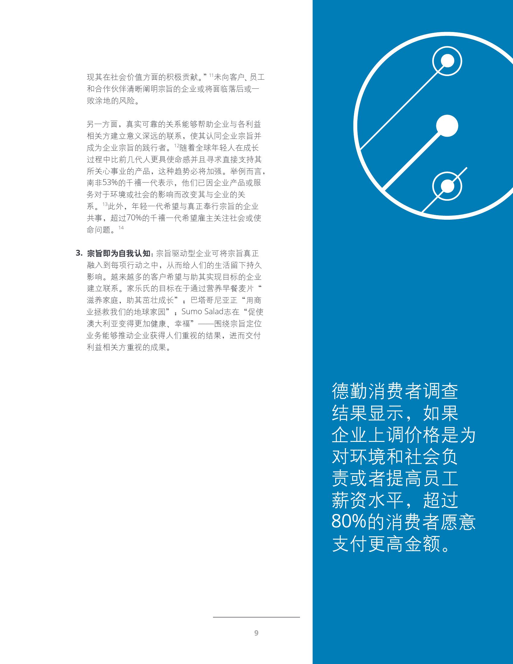 - 公司以宗旨为纲领且围绕其宗旨构建生态系统,则可在顾客和员工中建立更高的忠诚度、一致性和相关性。