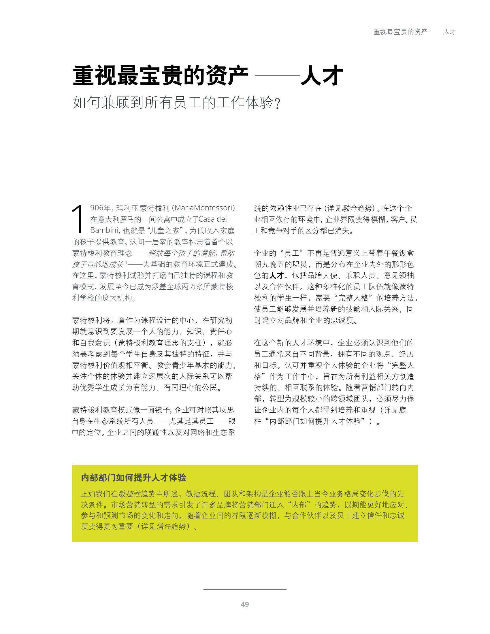 - 宗旨、人性化体验、融合、信任、参与度、人才和敏捷性为主要趋势关键词。