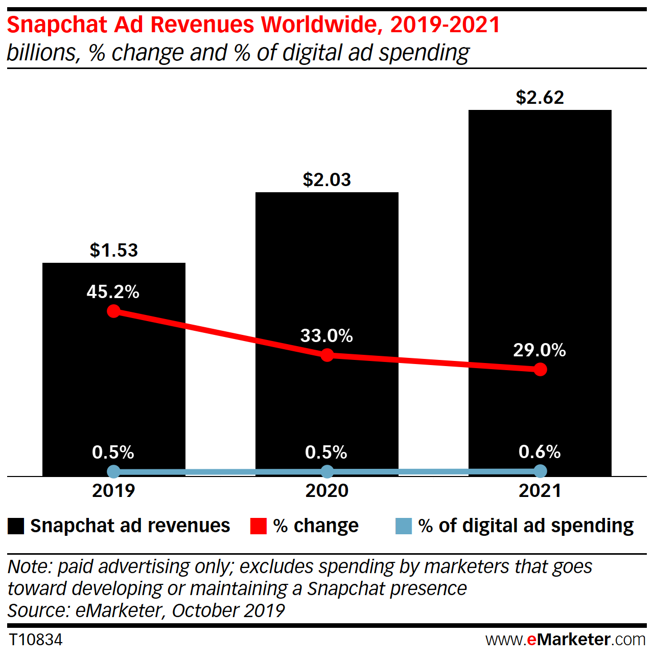 到今年年底,Snapchat将在全球拥有2.9301亿用户,比去年增长14.2%。与第二季度预测(2.827亿)比有向上的调整。同时,eMarketer预计Snapchat到2023年底将新增6300多万用户。