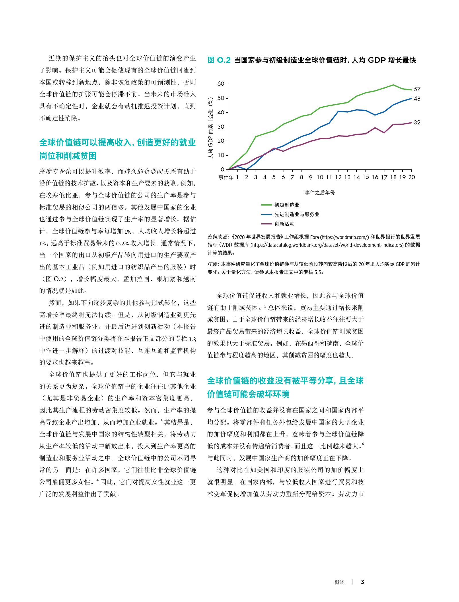 - 提供更好的就业:全球价值链中的企业吸引人员进入生产率更高的制造业和服务业就业,而且往往雇用更多的女性,从而支持了发展中国家的结构转型。