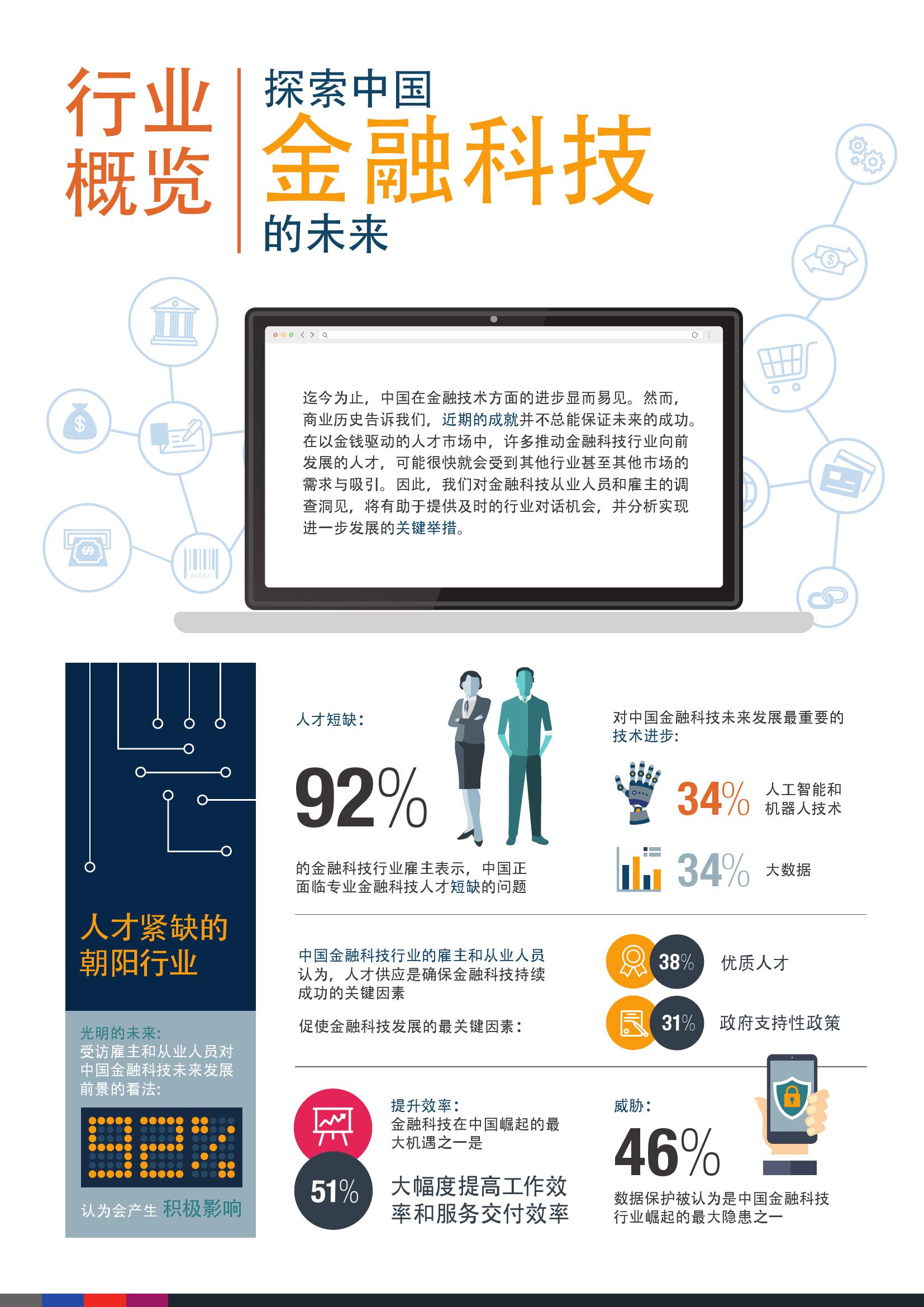 迄今为止,中国在金融技术方面的进步显而易见。然而,商业历史告诉我们,近期的成就并不总能保证未来的成功。在以金钱驱动的人才市场中,许多推动金融科技行业向前发展的人才,可能很快就会受到其他行业甚至其他市场的需求与吸引。因此,我们对金融科技从业人员和雇主的调查洞见,将有助于提供及时的行业对话机会,并分析实现进一步发展的关键举措。