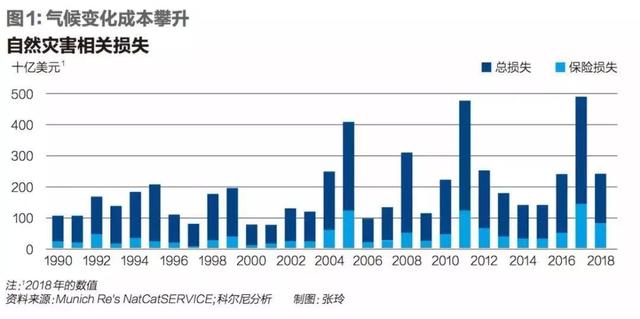 2018年,全球自然灾害数量高达394起,和过去50年相比增长近三倍,影响波及所有地区和行业。气候变化带来的挑战包括强风暴增加、极端高温天气增加,以及导致洪涝、干旱和农业生产中断的天气模式变化。这些都会对当地经济造成系统的、负面的影响。