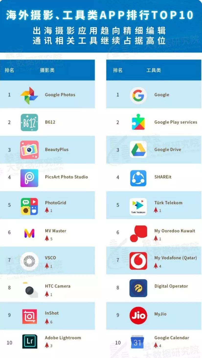 出海摄影应用趋向精细编辑,通讯相关工具继续占据高位。