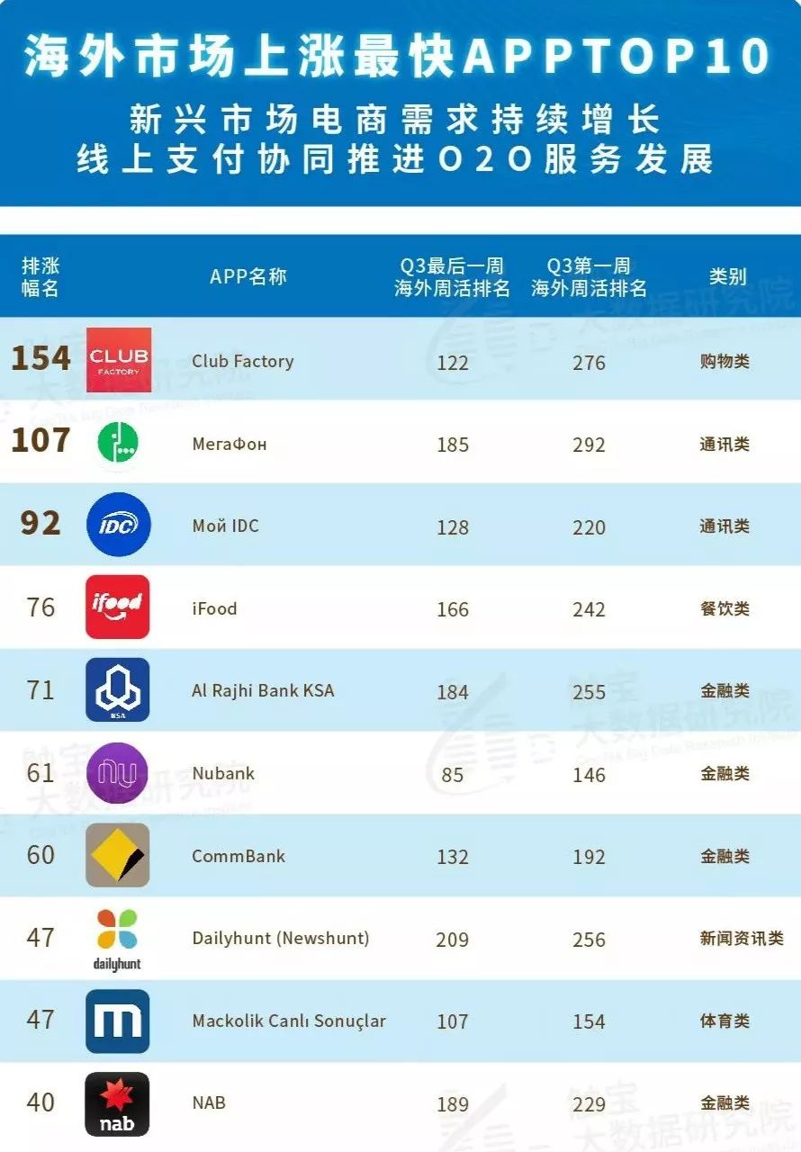 电商类应用持续快速增长,继上一季度 Mercado libre 在拉美地区快速获客之后,深耕印度的出海应用 Club Factory 也快速增长,同时邻近印度的排灯节促销,电商与购物节的应用将会带来大量的用户。用户购物行为将随基础设施的升级而转向即时化,多场景化。金融类应用的线上银行进一步加快移动互联网对于金融行业的赋能,更便捷的支付与贷款也将提升移动应用的消费与支付频次,对于其他需要与线下行业结合的如外卖、出行等 O2O 服务,东欧、南美等市场也将拥有较大机遇。