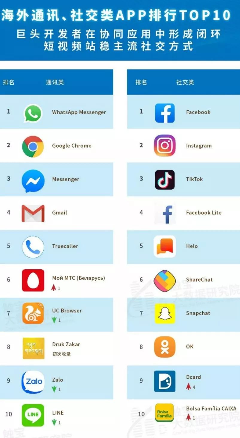 本次榜单中加入了与上一季度的排名比较,可以清晰看出,通讯类应用的头部仍然被巨头锁定,以谷歌和 Facebook 为代表的巨头利用不同应用之间的流量数据闭环让用户完全处于闭环内部,保证用户的粘性和变现潜力。东南亚应用 Druk Zakar 上升较快,这是一个日期类的风俗应用,由于新年将至用户增长有一定的周期性。