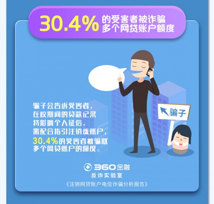 近年来,社会信用体系建设的加快让个人征信的影响越来越大,近期就有不法分子利用消费者对征信重视的心理进行“注销网贷账户”电信诈骗。360金融反诈实验室发布的《注销网贷账户电信诈骗分析报告》(以下简称《报告》)显示,年轻且受过高等教育的人群成为此类诈骗的高发群体,其中约三成的受害者被诈骗多个账户额度。