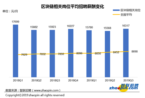 区块链领域平均招聘薪酬达到16317元,是全国平均的近两倍