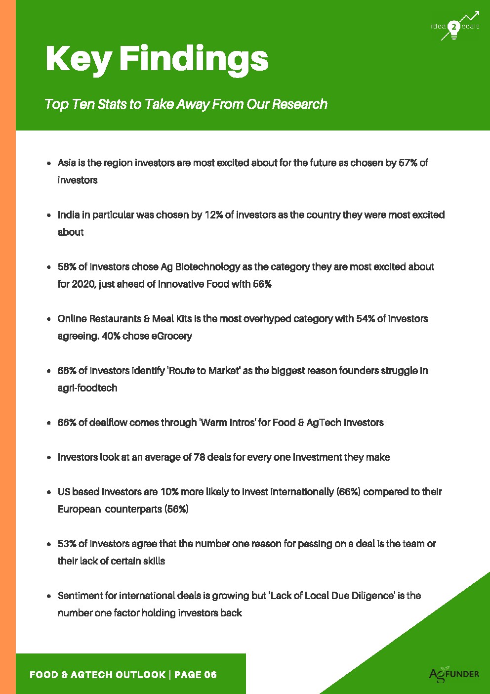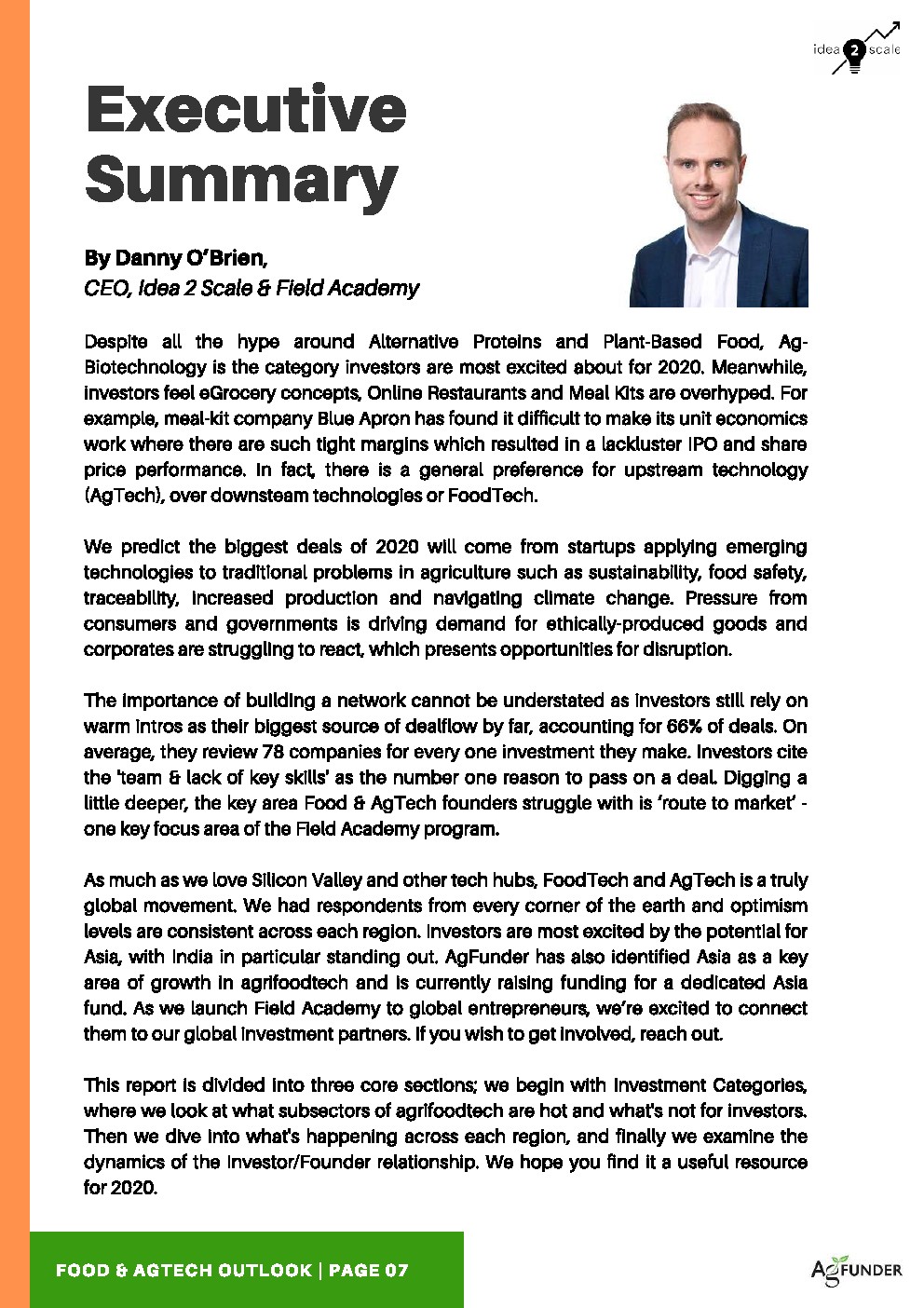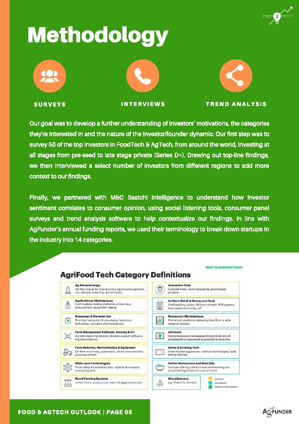这份报告分为三个核心部分;从投资类别开始,分析了农业食品科技的哪些子行业是热门的,哪些是不适合投资者的。然后探索了每个地区正在发生的事情,最后检查投资者/创始人关系的动态。