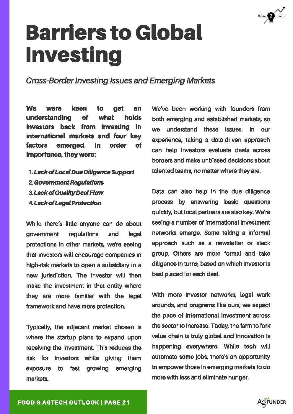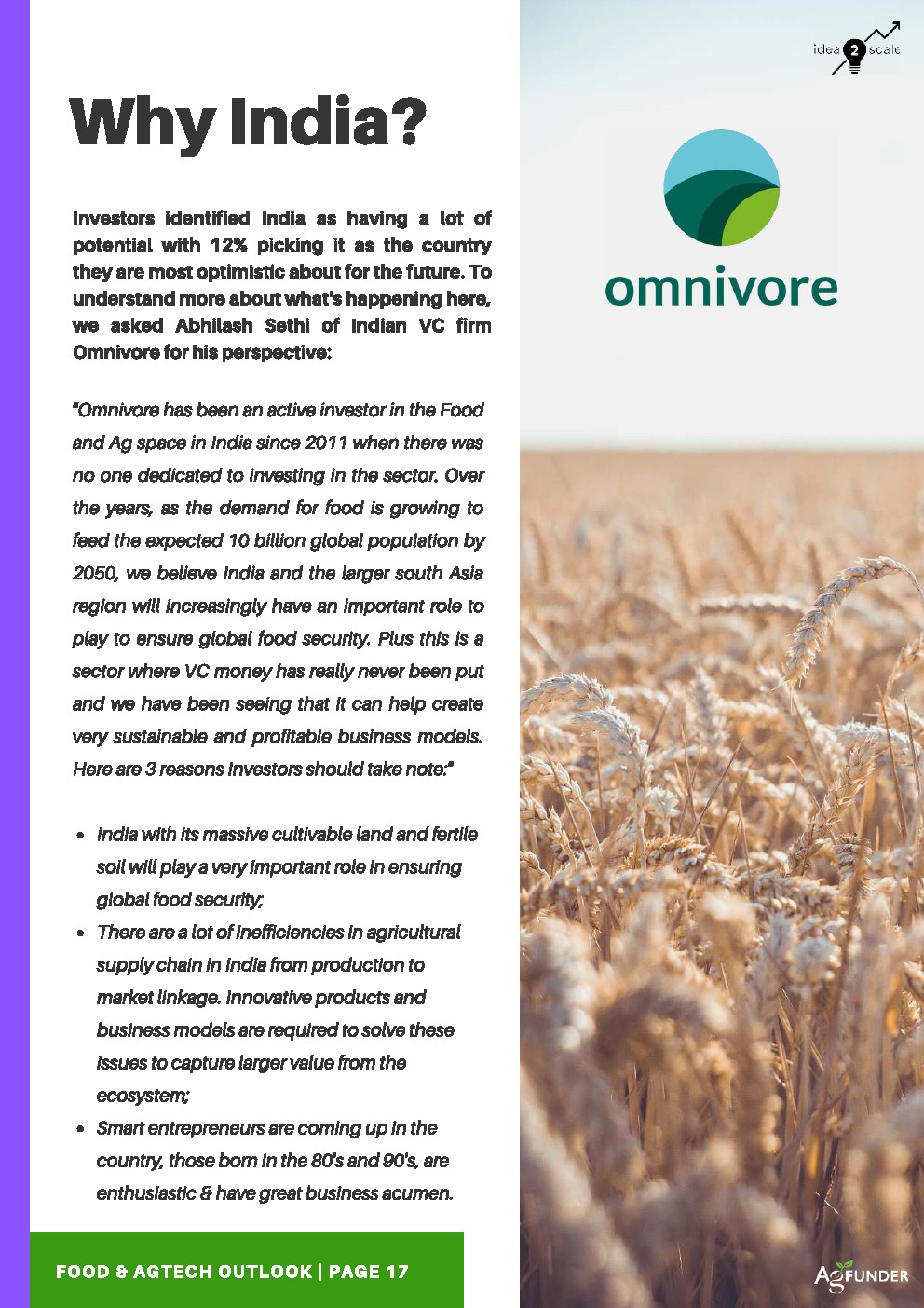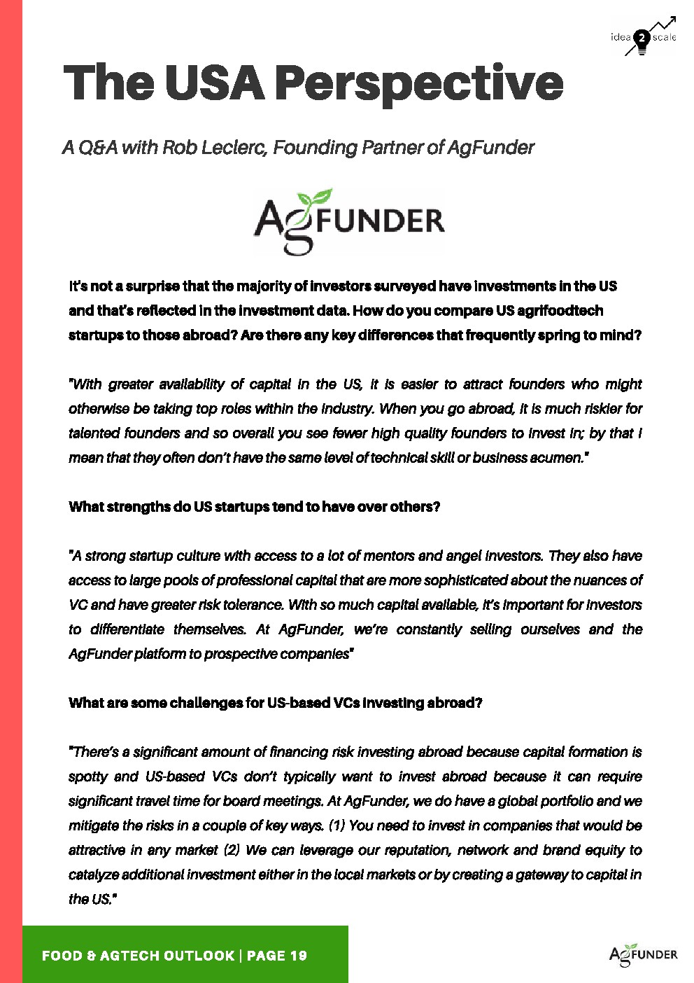 这份报告分为三个核心部分;从投资类别开始,分析了农业食品科技的哪些子行业是热门的,哪些是不适合投资者的。然后探索了每个地区正在发生的事情,最后检查投资者/创始人关系的动态。