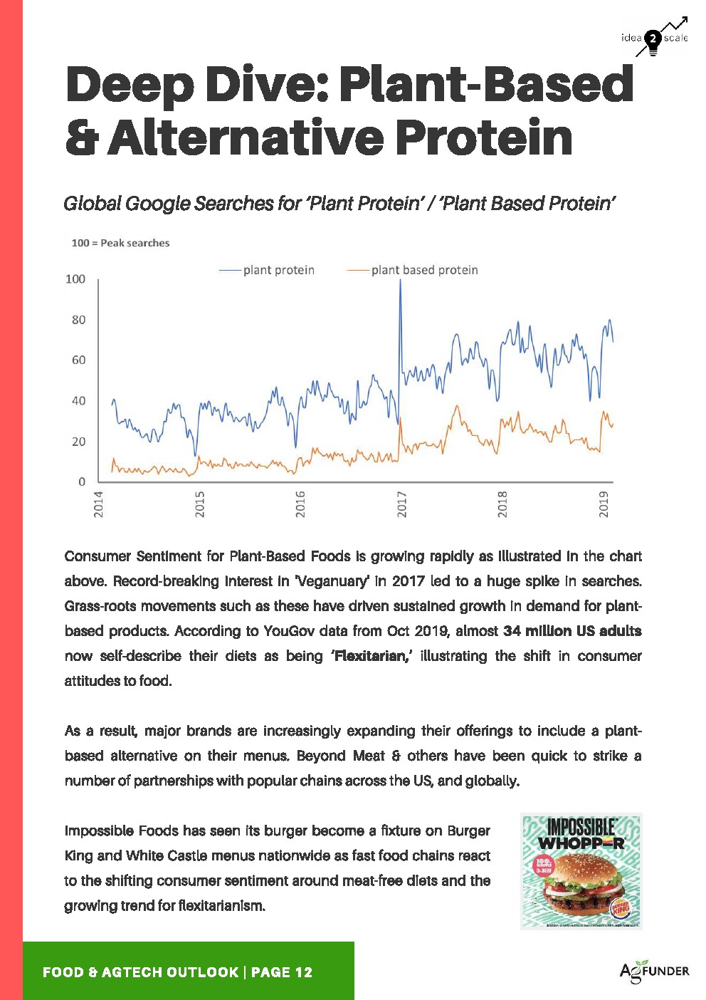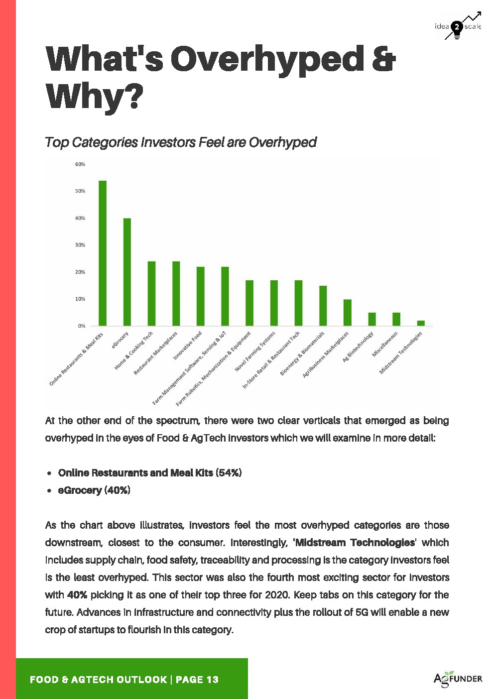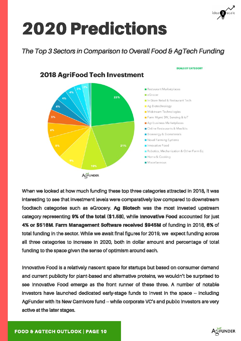 AgFunder发布了最新的“食品和农业科技投资报告”。2020年最大的交易将来自初创企业,它们将新兴技术应用于农业的传统问题,如可持续性、食品安全、可追溯性、增产和应对气候变化。来自消费者和政府的压力正在推动对合乎道德的产品的需求,企业正努力做出反应,这为颠覆提供了机会。