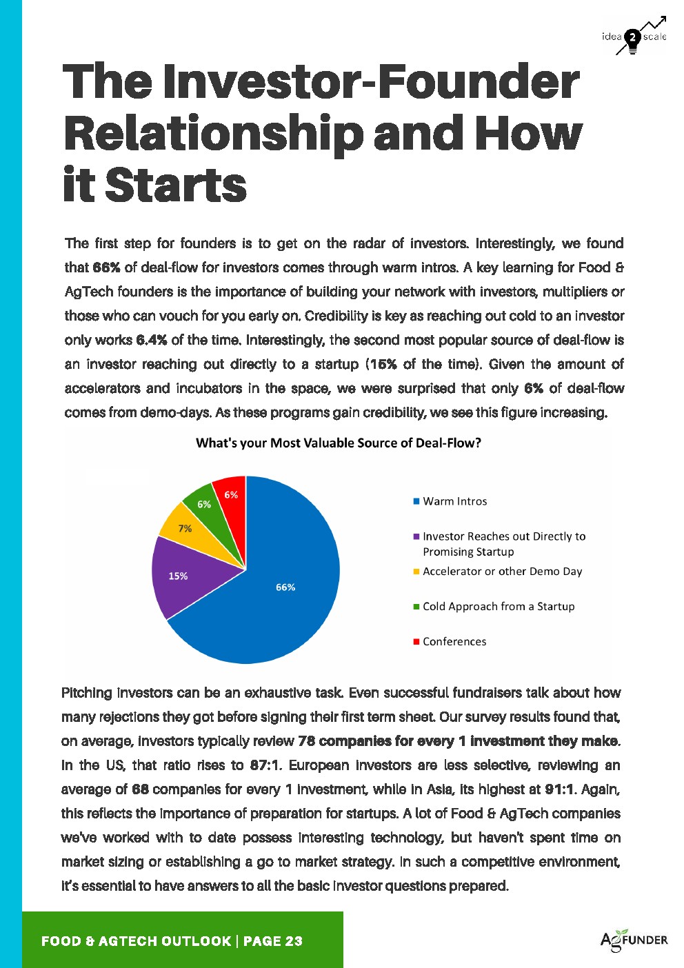 66%的交易流来自食品和农业科技投资者的“温馨介绍”。