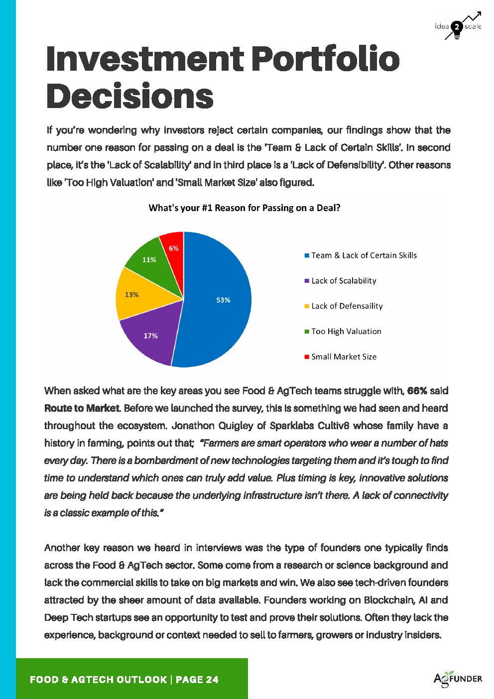 66%的投资者认为“通向市场的道路”是创始人在农业食品科技领域苦苦挣扎的最大原因。