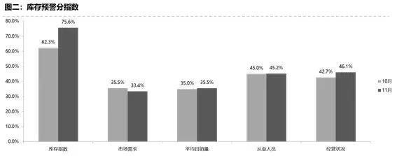 从分指数情况看:调查显示,本月库存指数75.6%,环比上升13.4个百分点,市场需求小幅下降,平均日销量指数、从业人员指数、经营状况指数环比小幅上升。