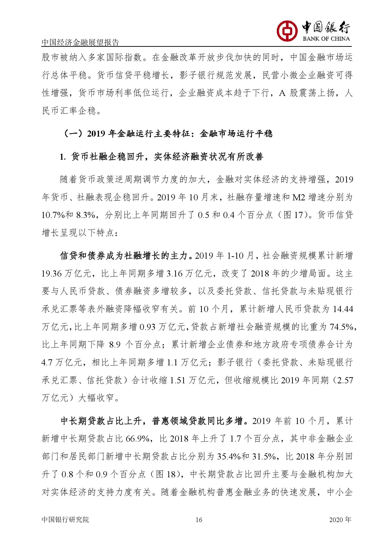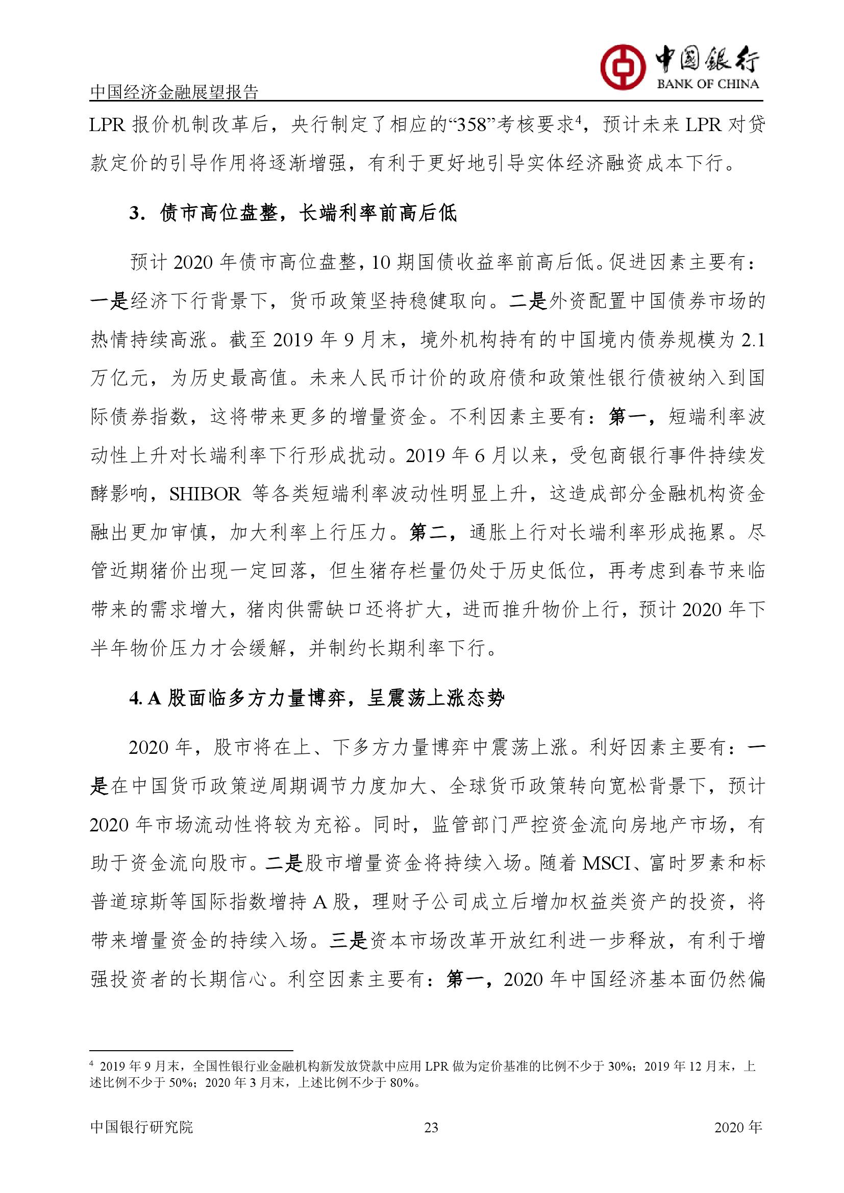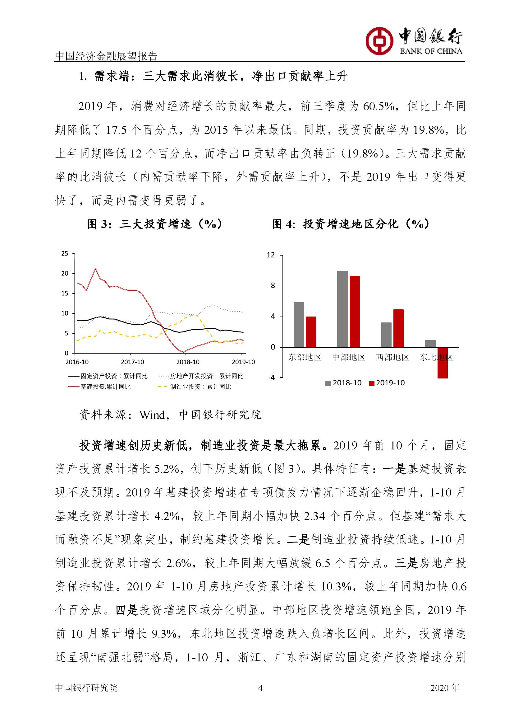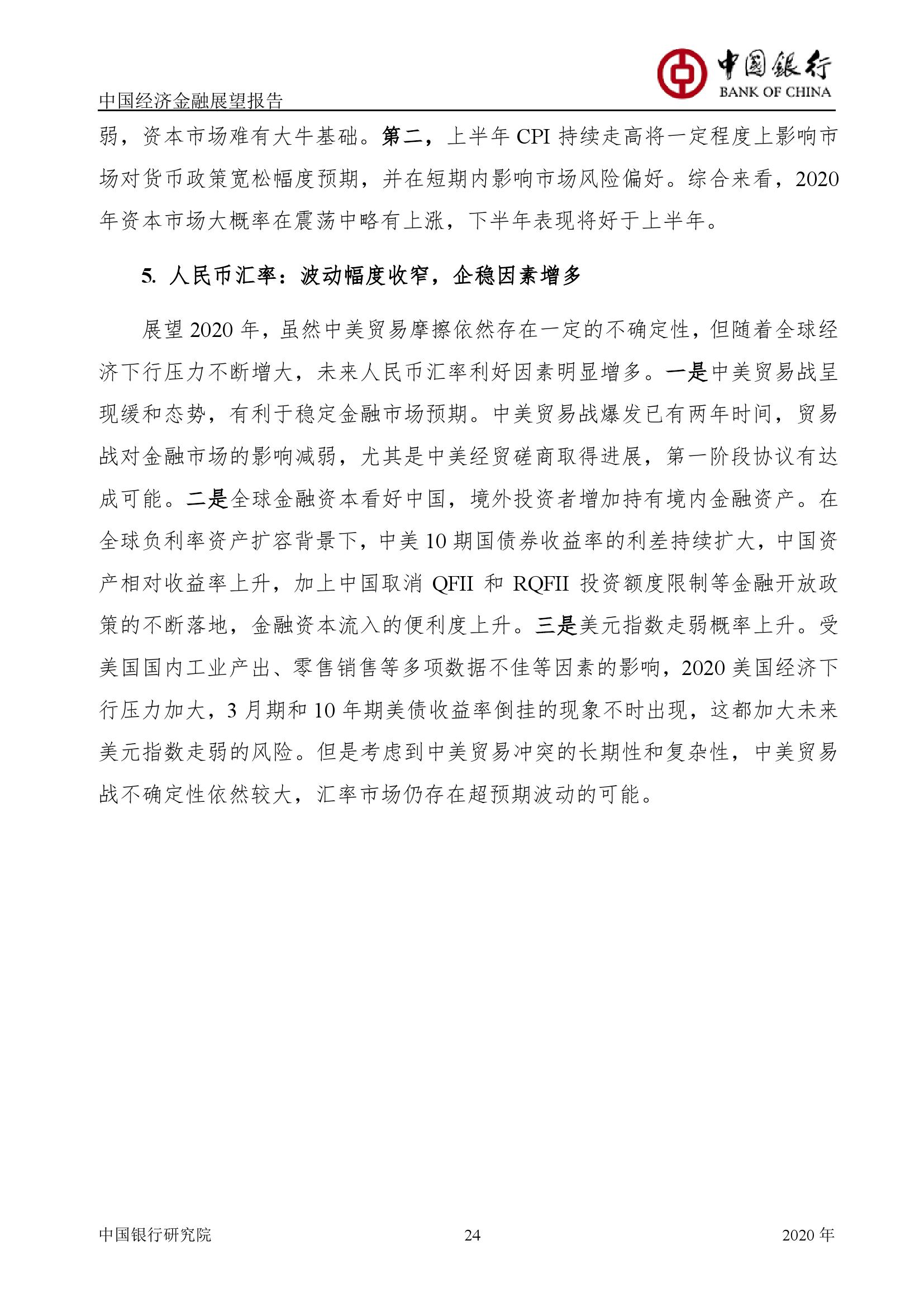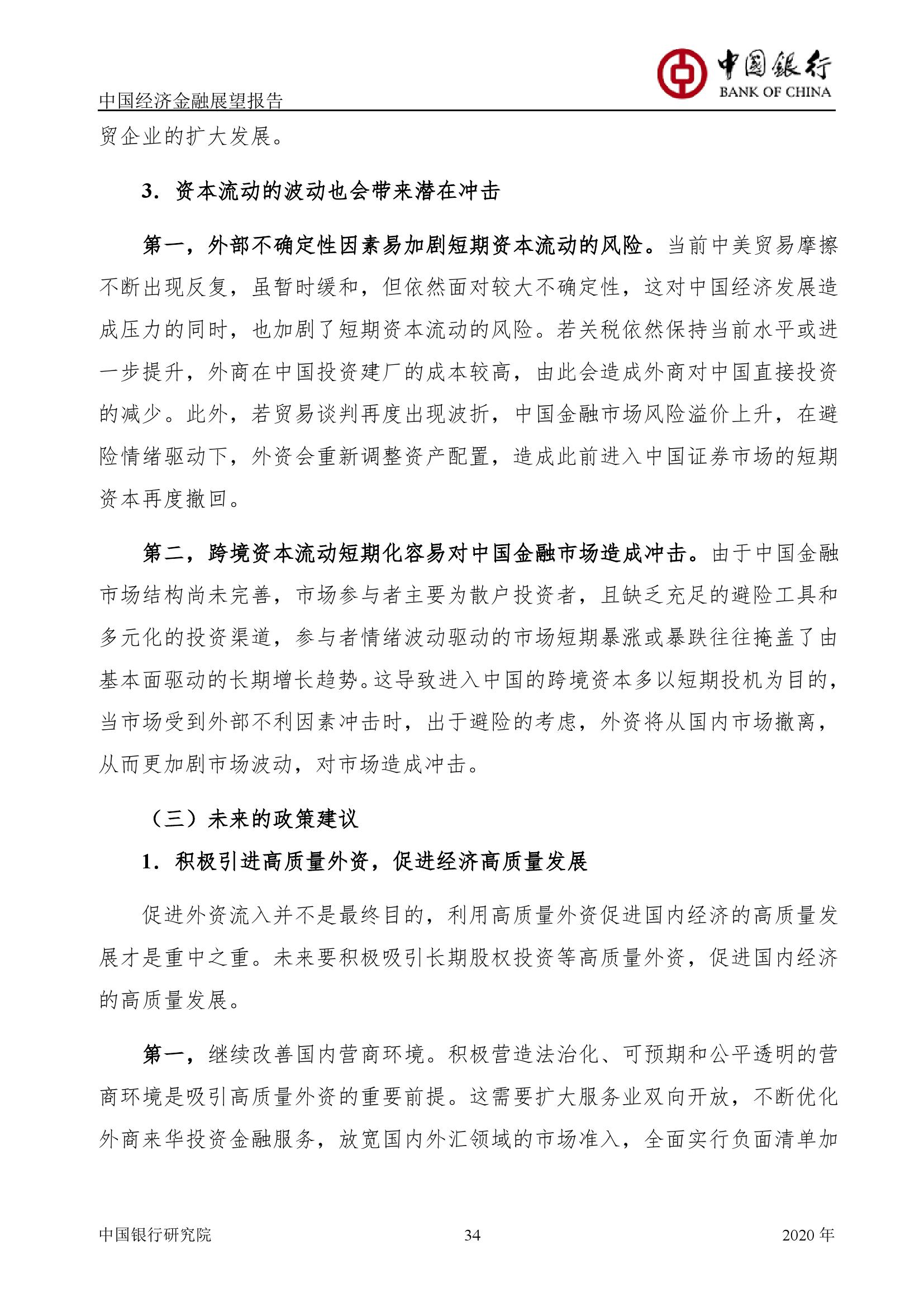 中国经济金融主要面临中美贸易摩擦、猪肉价格上涨、实体经济需求低迷、债券违约风险或向信贷市场传导等风险。展望2020年,中国经济面临的风险和挑战增多,总体判断“谨慎乐观”。按当前内外部市场环境,若政策不做大的调整,2020年中国经济自然增长率很可能会低于6%。