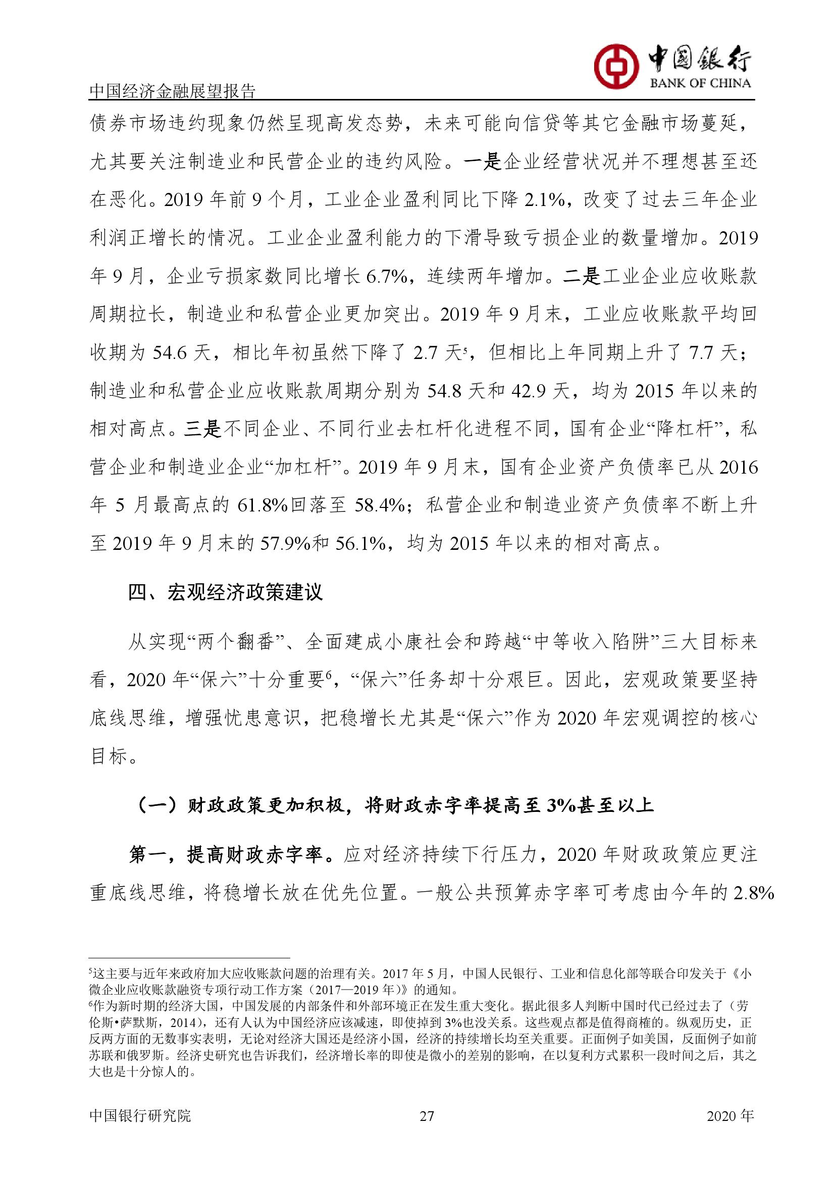 从实现“两个翻番”、全面建成小康社会和跨越“中等收入陷阱”三大目标来看,2020年宏观政策要坚持底线思维,增强忧患意识,建议把稳增长尤其是“保六”作为宏观调控政策的核心。