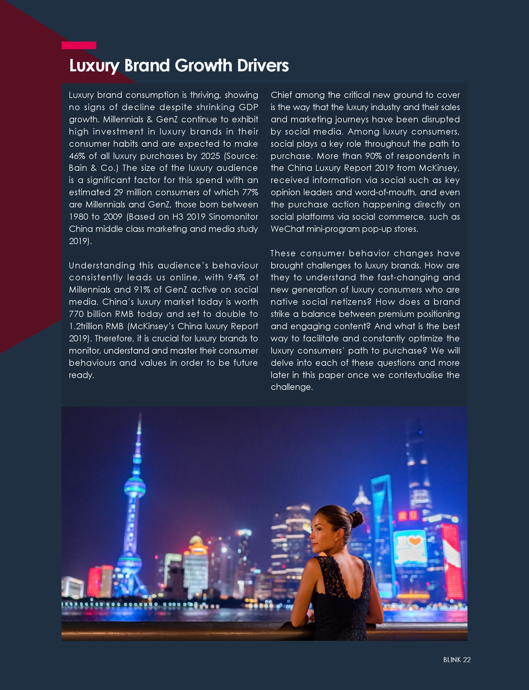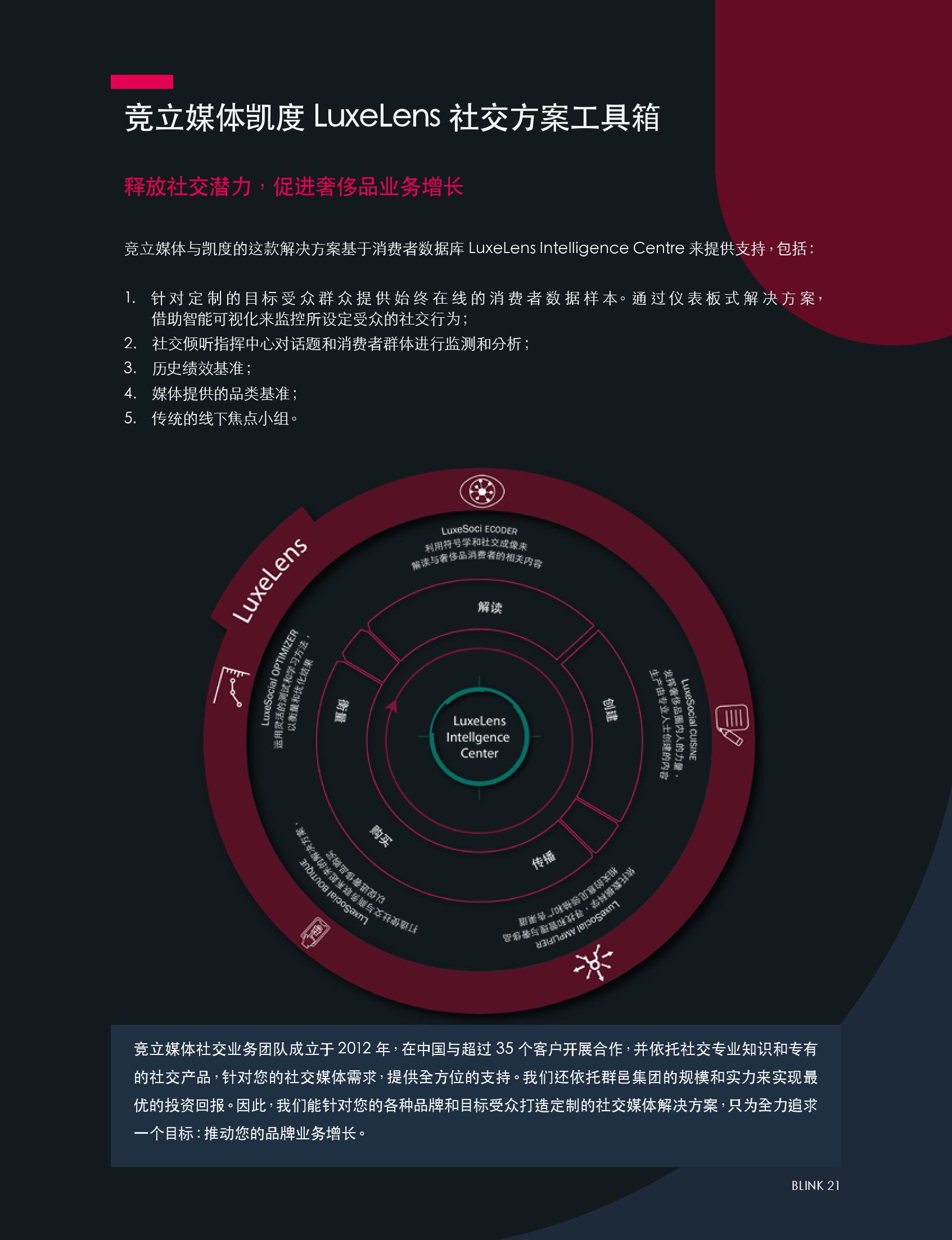 报告揭示了20个与中国奢侈品受众相关的内容主题,其内容基于对中国奢侈品消费进行的大规模研究,为奢侈品品牌提供了有效的社交媒体解决方案,帮助他们找到以受众为先的方法。