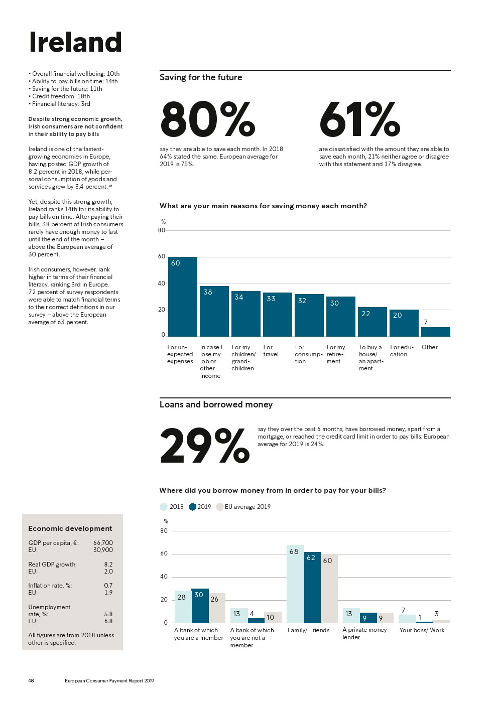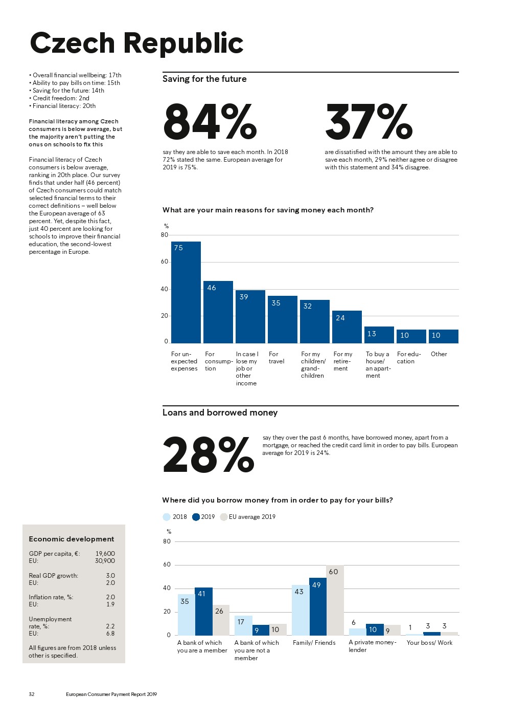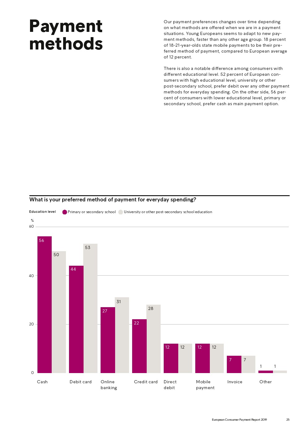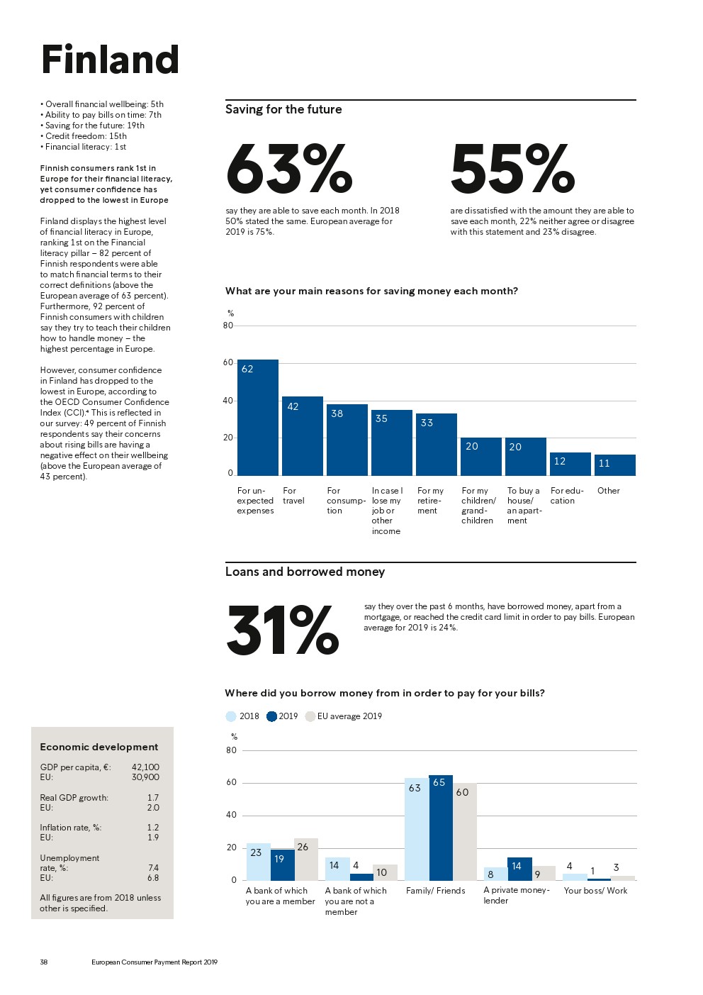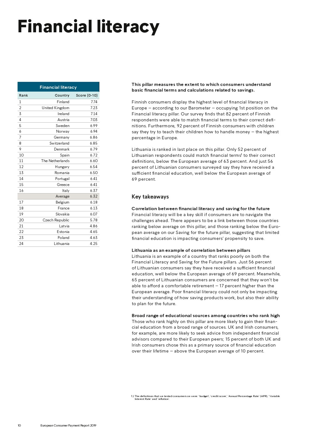 69%的受访者认为他们的金融教育已经足够,但是37%未能将基本的金融术语与其正确的定义相匹配,尤其是年轻消费者。大多数欧洲消费者(51%)的金融教育主要来源是父母,但是他们更希望学校能够给孩子们传授这方面的知识(63%)。