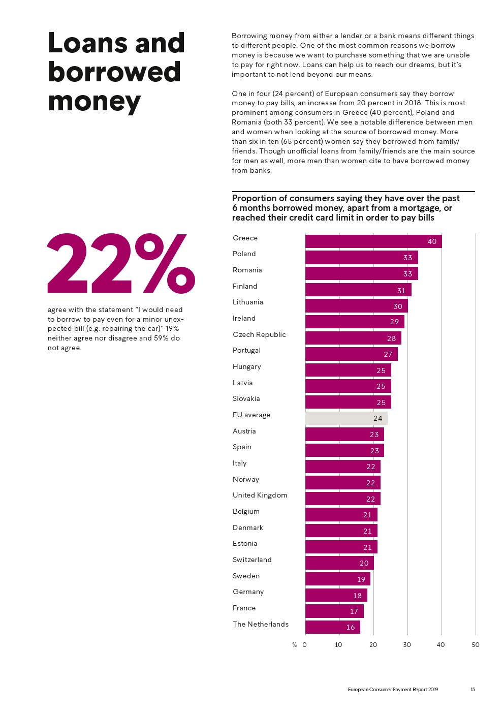 越来越多的欧洲人(24%)为了支付账单而借钱或达到信用卡限额。其中31%的年轻欧洲消费者这么做。