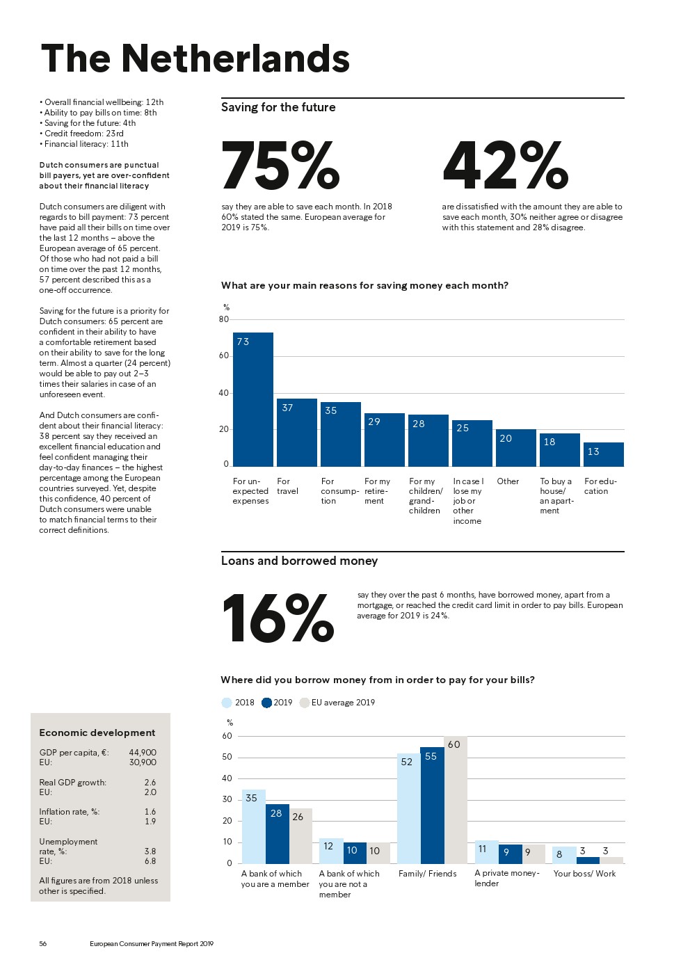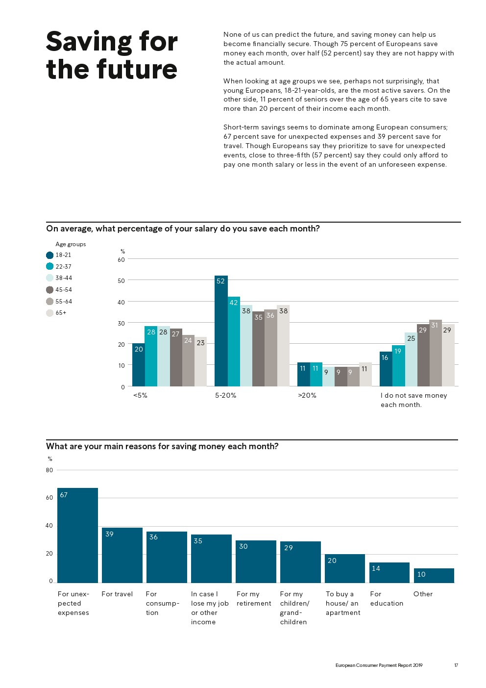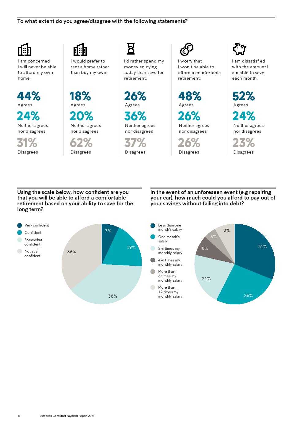 尽管大多数的欧洲消费者(75%)每月仍设法存下一部分工资,但超过一半的受访者(52%)对他们能够存下的金额不满意。只有30%的受访者把为退休而存钱作为主要动机,2/5的受访者(36%)认为,自己长期储蓄的能力能负担得起舒适的退休生活。